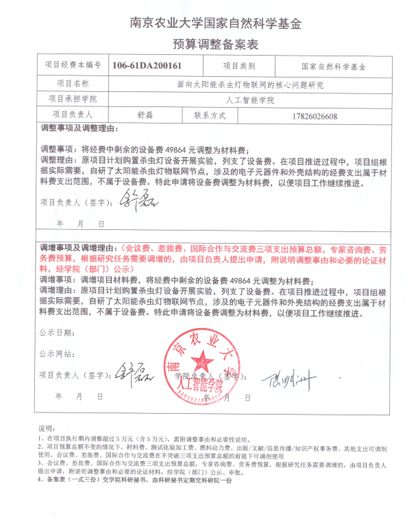 奈飞工厂 纵向科研项目(自科)预算调整(学院)公示(2024年10月)