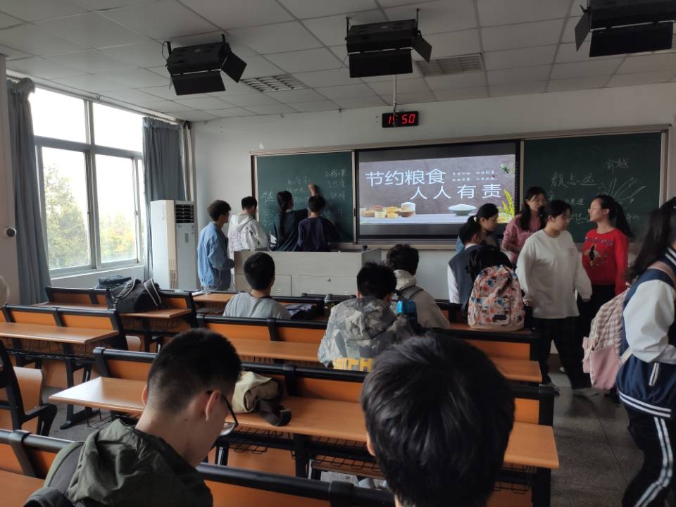 此外,各团支部通过PPT的形式带领大家重温了中华民族的勤俭节约的传统美德,并让大家意识到浪费粮食等不正确的餐饮习惯对社会带来的伤害,发掘节约粮食、正确饮食习惯的重要意义。结合国家的扶贫政策,在进行深入的思考后,同学们又有了更深的理解。