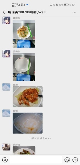 网工191团支部举行了团支部分享交流会,大家一起探寻“美好食光,拒绝浪费”的主题意义,并积极晒出了自己在光盘打卡行动中的光盘次数、天数。