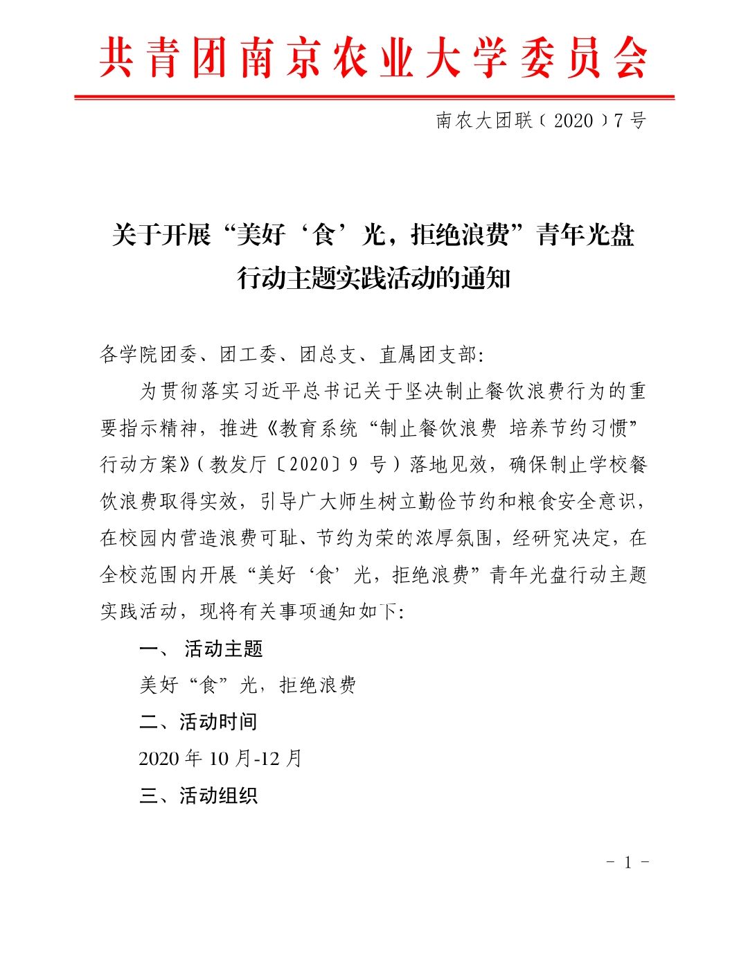 积极响应,于2020年10月至11月开展“美好‘食’光,拒绝浪费”青年光盘行动主题实践活动。自活动开展以来,奈飞工厂