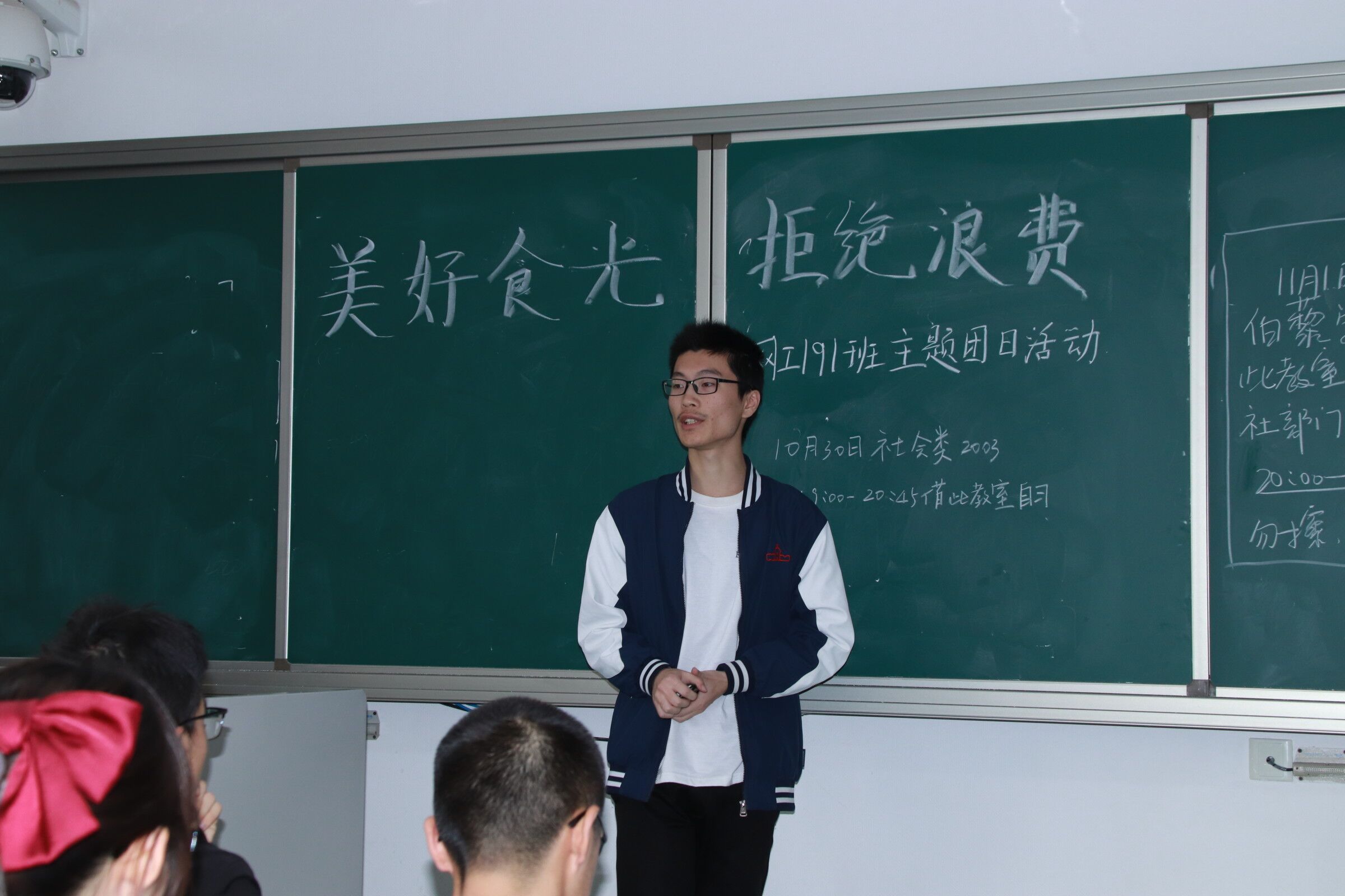 计科192团支部在观看相关视频学习之后,全班同学都在黑板上签下了姓名。这是同学们对于坚决贯彻落实光盘行动的庄严承诺。