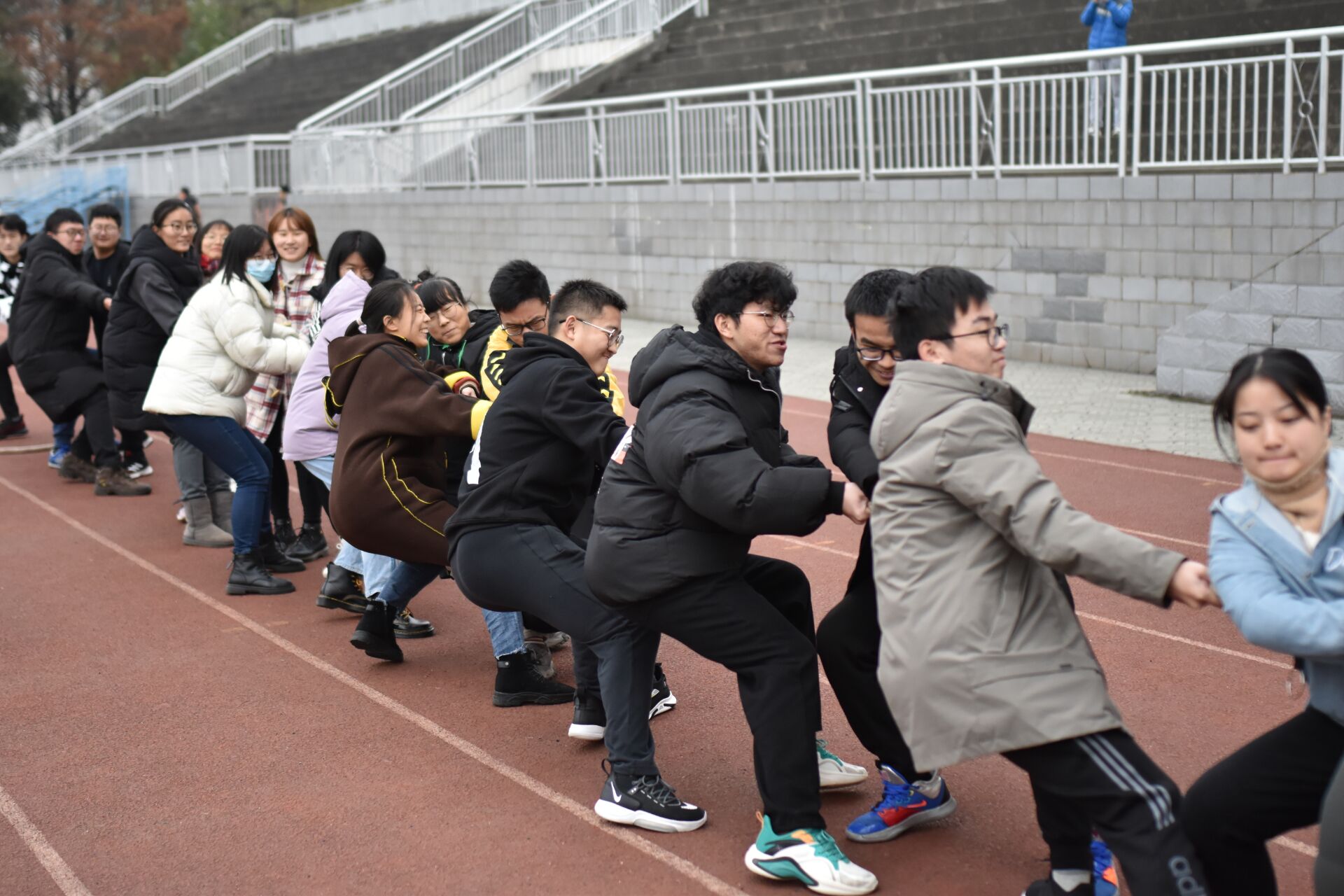 学生共分为五支队伍,分别是:计科大数据人工智能三专业联队、电信类专业1队、电信类专业2队、大二电信队和大二自动队。比赛分为两人三足、拔河、跳大绳和袋鼠跳四个项目。按照各项比赛一、二、三名积5、3、2分决出冠亚季军。尽管天气寒冷,但同学们热情不减,团结协作完成比赛。运动会项目趣味性与挑战性共存,参赛选手体验到了运动的快乐与竞争的乐趣。最终,由电信类2004-2008班组成的电信类专业1队荣获第一名,大二电信队获得第二名,大二自动队和由电信类2009-2012班组成的电信类专业2队并列第三名。
