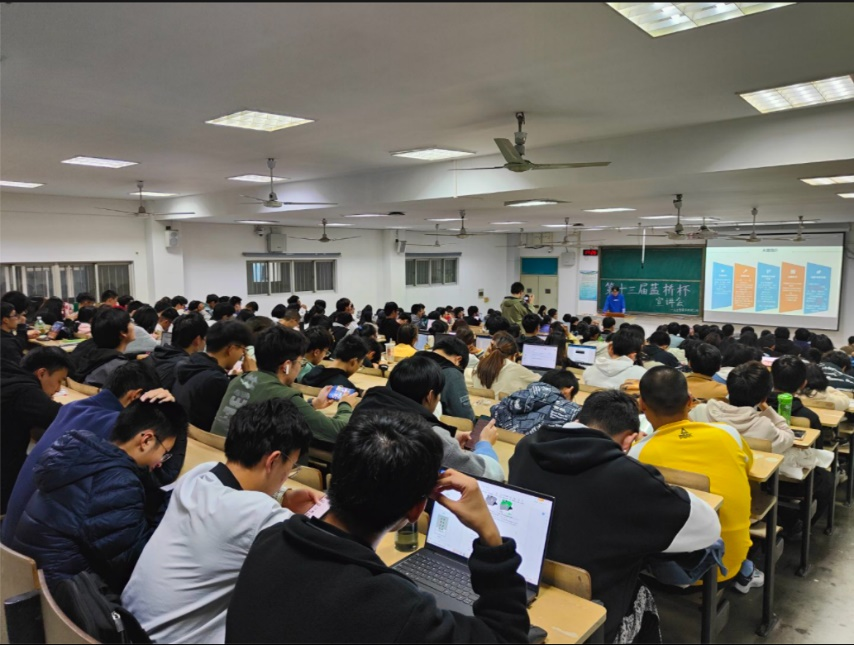 计算机系教师陆静及往届参赛选手代表王尚名、鄢杰担任主讲人。活动旨在增进同学们对“蓝桥杯”大赛的了解。