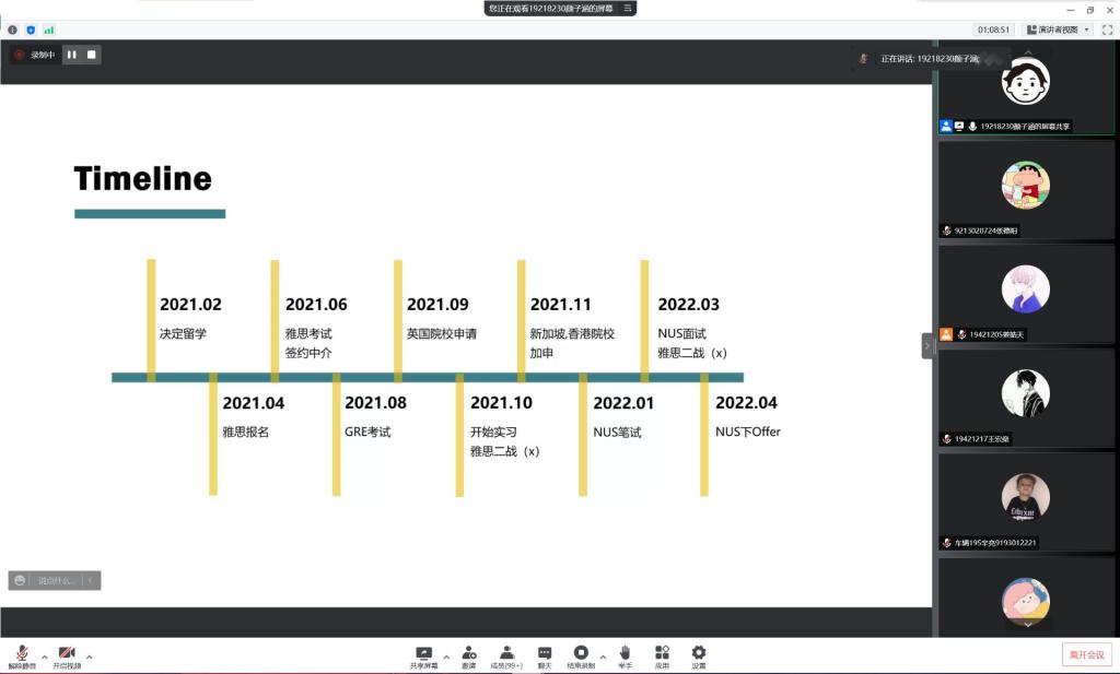 “AI科研月”——出国出境留学讲座顺利召开。留学学子仝曦熳、邓博阳、颜子涵、李启源出席本次讲座。讲座面向奈飞工厂