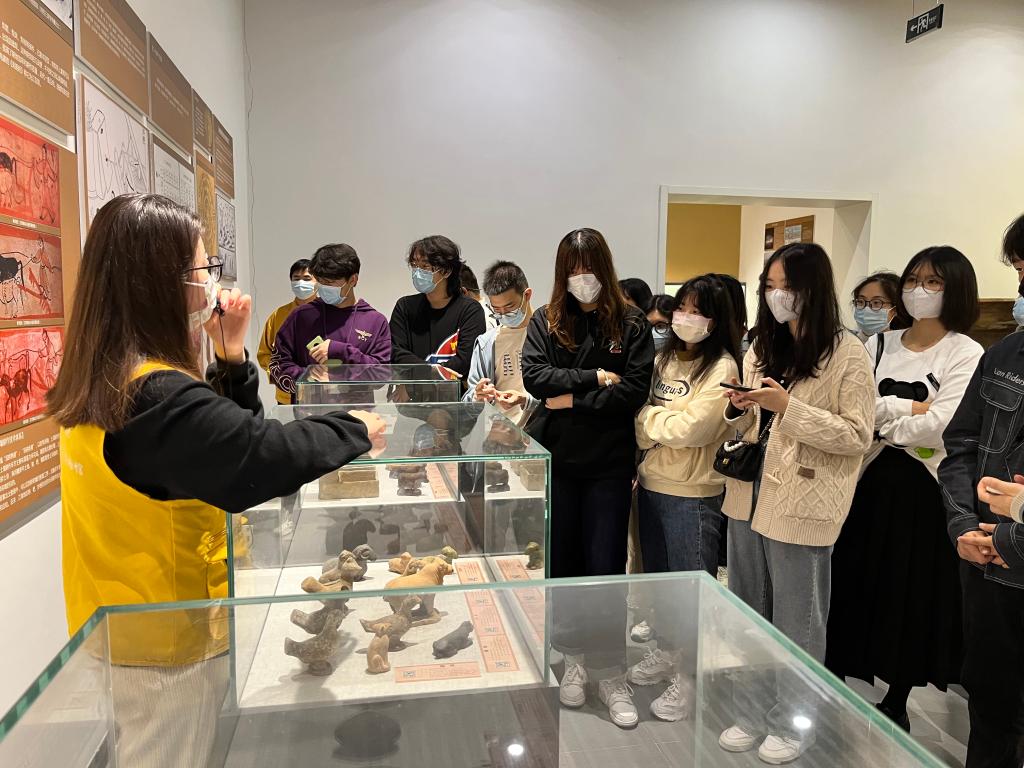 在中华农业文明博物馆参观中,讲解员围绕馆藏实物向同学们细数农具的用途及其背后体现的农业技术和制造工艺,古朴的龙骨水车,饱经风霜的战国铁足铜鼎,小巧且精致的汉代铁鏊等,讲解员为大家介绍了它们的用途和使用方式,大家纷纷拍照留念。接着讲解员以时间为线索,引导同学们依次进入中华农业文明起源、传统农业技术体系的创立与发展、农业制度的历史演变等六个主题展馆参观。