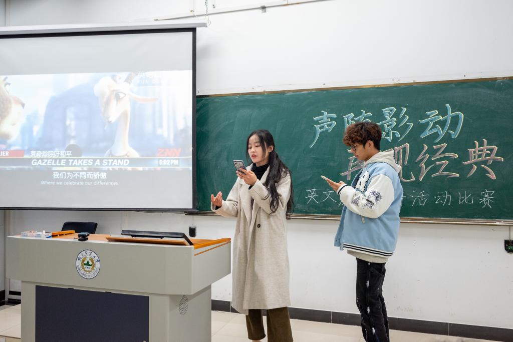 学生会主办,英语教师姜静静担任本次活动的评委,学院一、二年级学生代表参与其中。