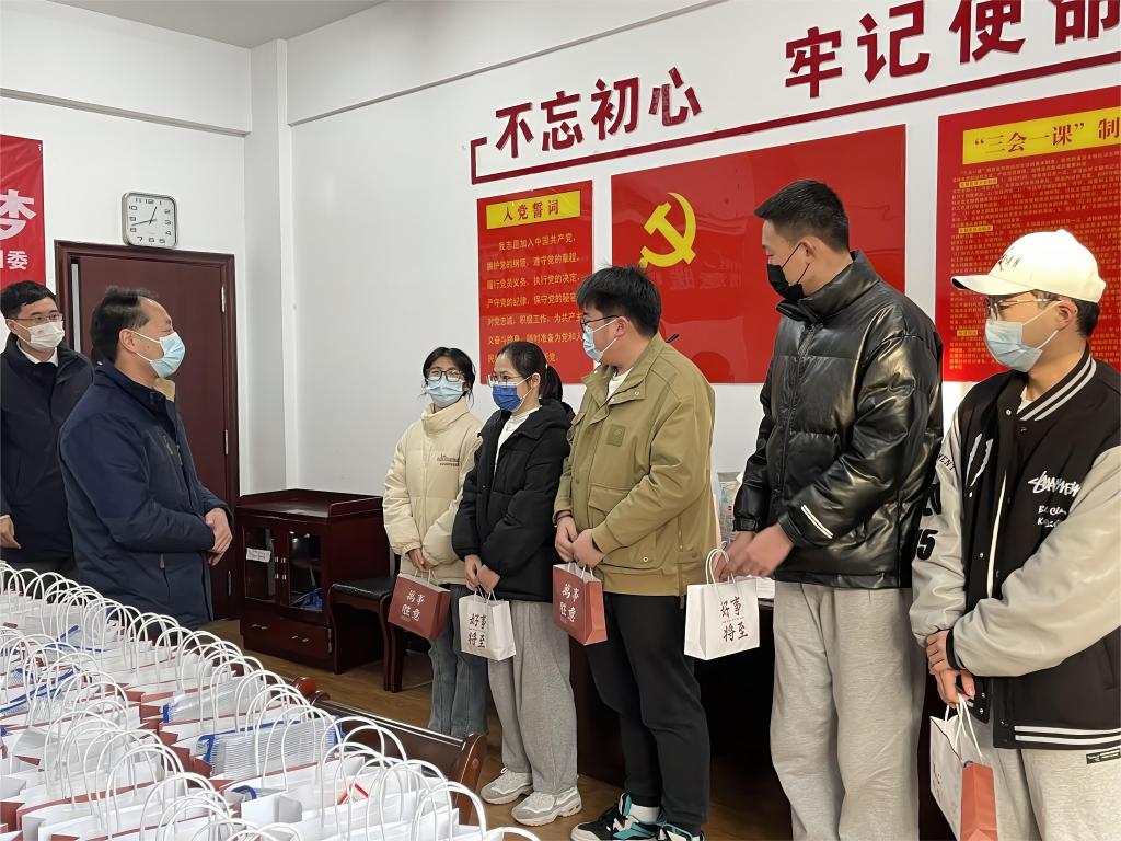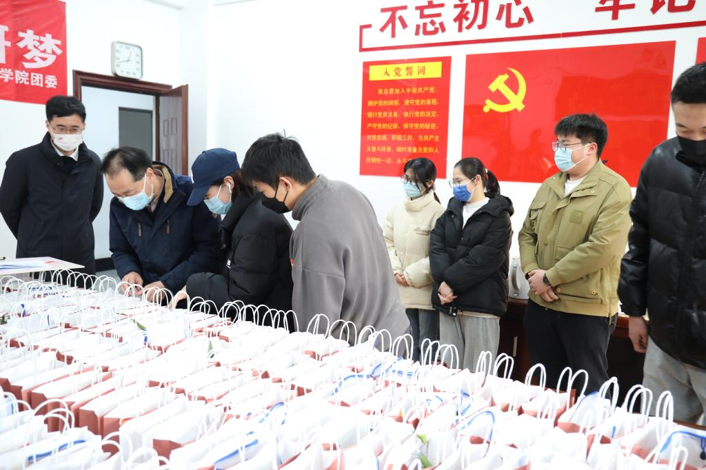 活动特别邀请学院党委书记田永超、党委副书记吕一雷以及学院学生工作办公室的辅导员们为考研同学代表分发礼包,传达学院老师对考研学子的殷切期望与由衷祝福。活动现场,田永超亲切询问同学们的目标院校,叮嘱同学们在复习的关键阶段,坚定必胜信心,保持良好心态,科学作息,规律饮食。