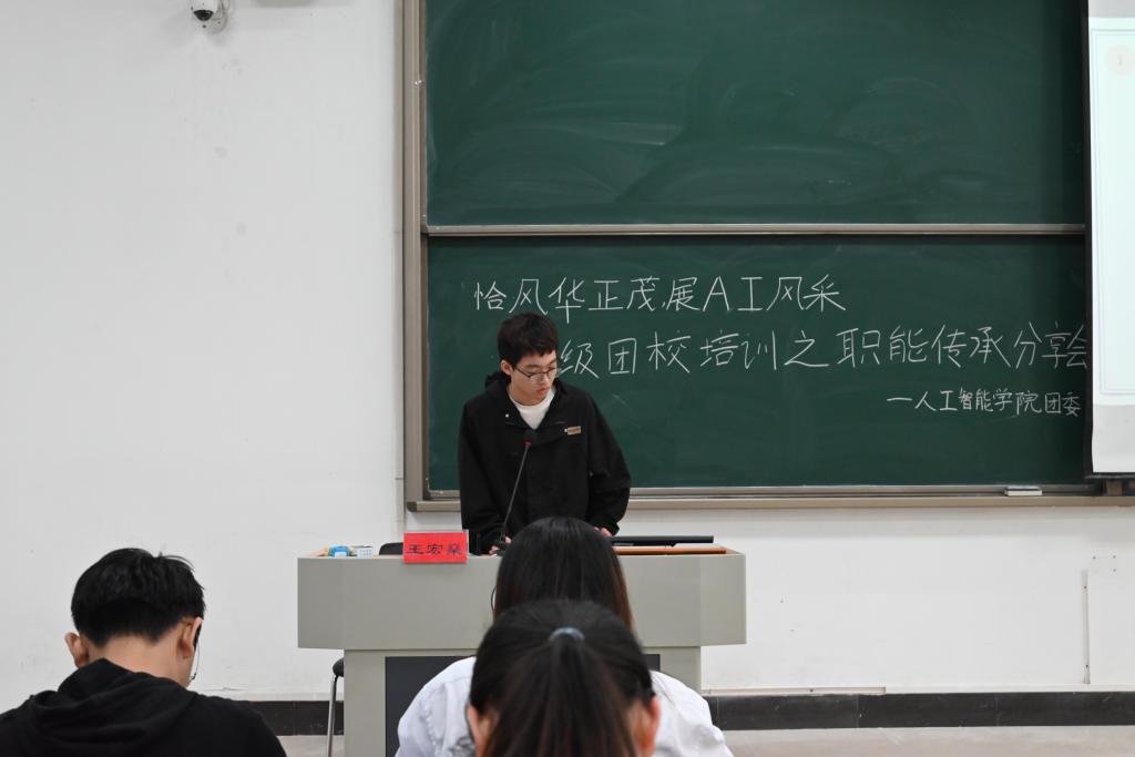 培训开始,主讲人王宏燊首先分享部门工作交流经验,他表示,通过干部与干事的经验交流,能够更好地提升工作能力、了解自身职责所在,以便未来干事能顺利地完成各部门的任务。紧接着,主讲人刘雅彬从自己留任部门的相关经历出发,针对干事和部长的生活学习方面给出了一些建议,并对同学们的提问给予详细的解答。为了让同学们对职能传承有更深入的了解,刘雅彬向同学们介绍学生组织职能变化和学生工作的意义。最后,主持人对本次交流会进行了简要地总结,并宣布培训结束。