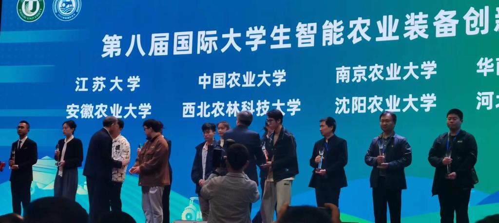 本届大赛以“保障粮食安全、推动乡村振兴”为主题,经过决赛舞台498支队伍的激烈角逐,由卢伟、代德建老师指导的“基于阻抗控制的传统拖拉机动力换挡升级智能系统”和肖茂华老师指导的“水田无人驾驶智能高效机械除草机器人”荣获A类作品特等奖;张保华老师指导的“系列化机器人柔性抓手设计、控制与果蔬无损分拣应用”和赵国老师指导的“基于光谱感知技术的多参数全自动水质检测设备”、“基于紫外光解的便携式自动化土壤重金属电化学检测系统”荣获A类作品一等奖;由邱威、赵育卉老师指导的“鹅颈式多风口远射程苗圃风送喷雾机”、“梯田果园仿形吊杆喷雾机”荣获A类作品二等奖;由刘龙申老师指导的“智慧农业元宇宙:农业机器人沉浸式远程人机交互控制系统设计”荣获D类作品二等奖。