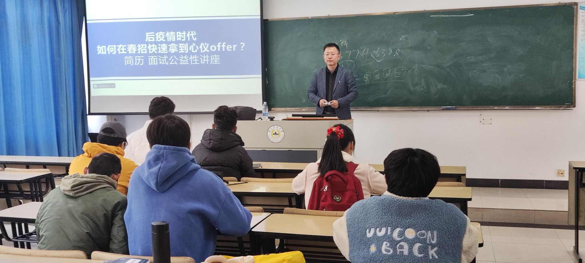 毕业年级学生求职竞争力提升,院团委充分调动院内就业指导老师、院外企业平台资深人力专家,协同深度参与学生求职指导与服务工作。3月2日,学院团委举办“春招”简历制作、面试能力提升指导讲座,讲座特邀艾瑞集团汇智系统集成有限公司项目负责人陈韩老师主讲,旨在分享简历完善、面试能力提升的经验,解决同学们在“春招”中的各种问题。