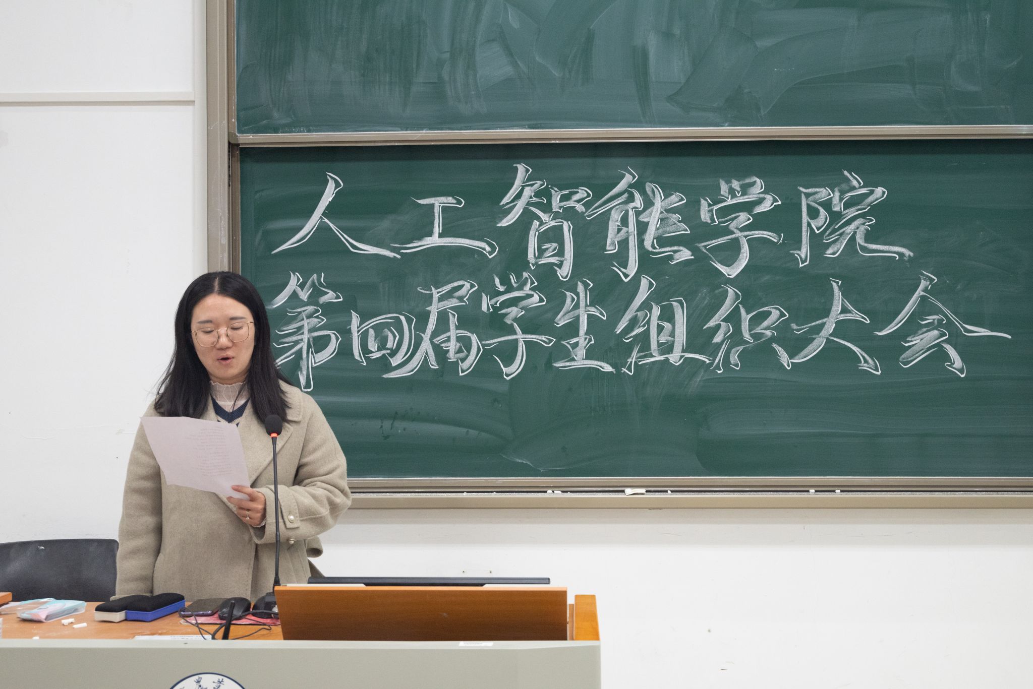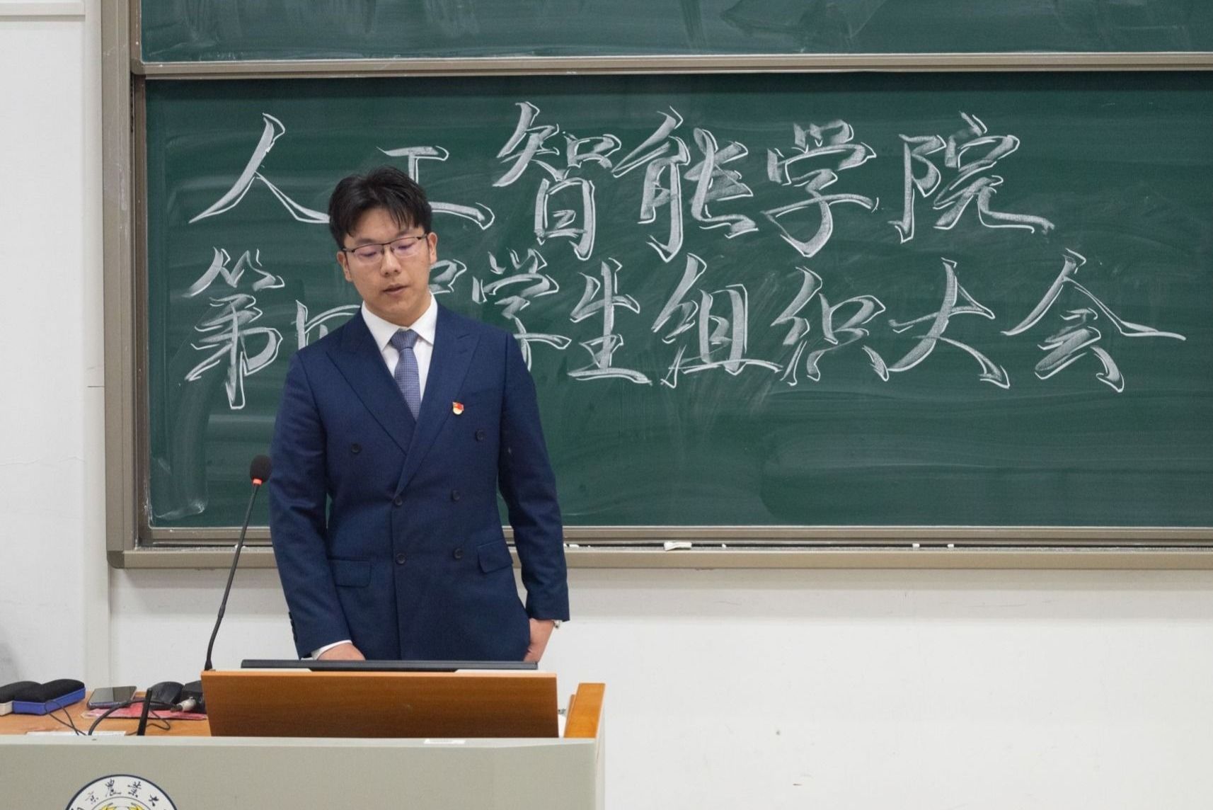 随后,议程第二项,分党校秘书长沈豪杰、学生团委副书记王佳辰、学生会执行主席吴刘柯、全媒体中心主任黄逸宸、AI工坊主席张国航依次上台,分别介绍了学院五大学生组织的职责分工与建设成果,充分展现了奈飞工厂