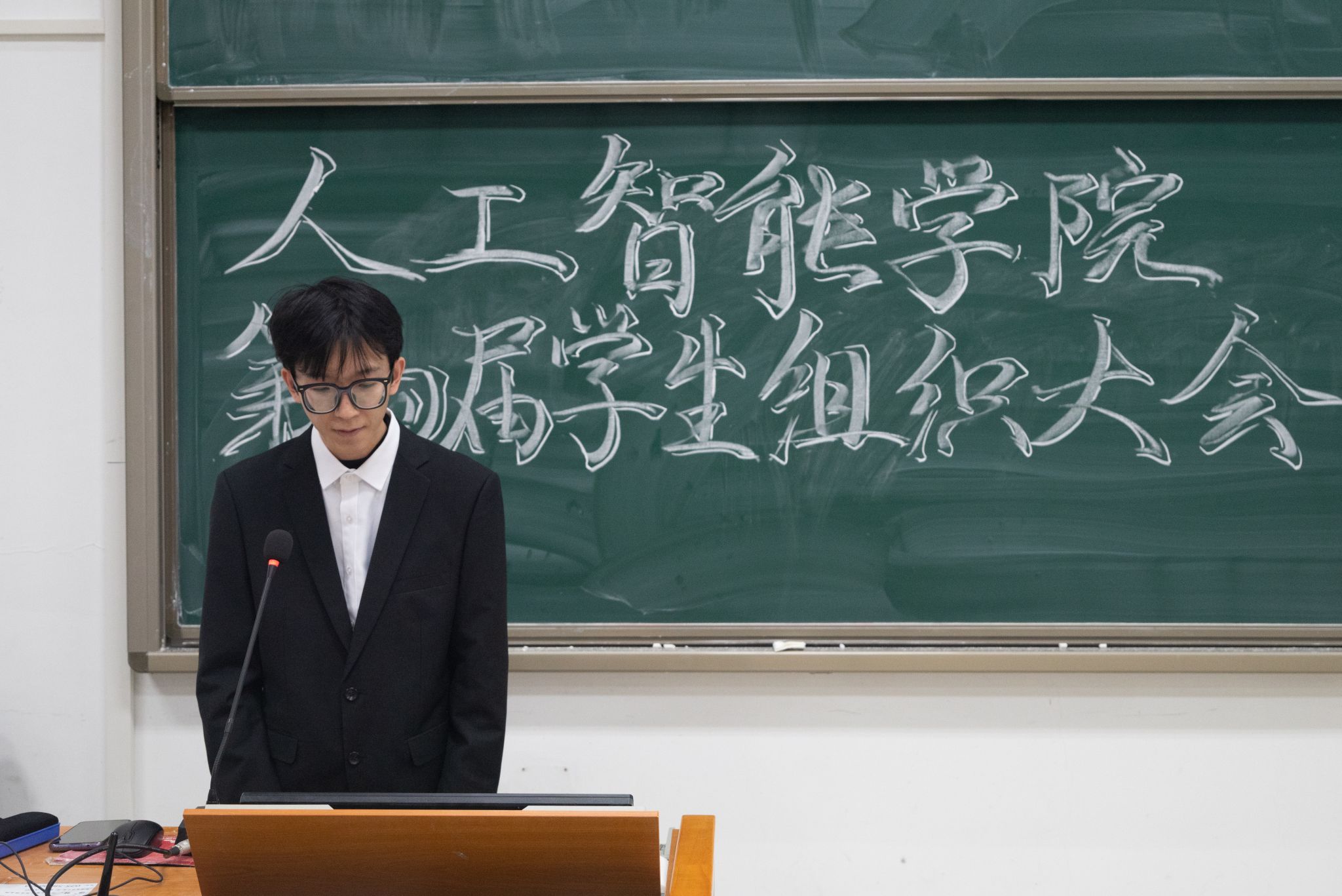 议程第三项,章棋、封筱、李洪、于佳琪及湛斌依次宣读了新一届学生干部任用名单。庄严的氛围使学生干部愈发感受到自身的责任感和使命感。