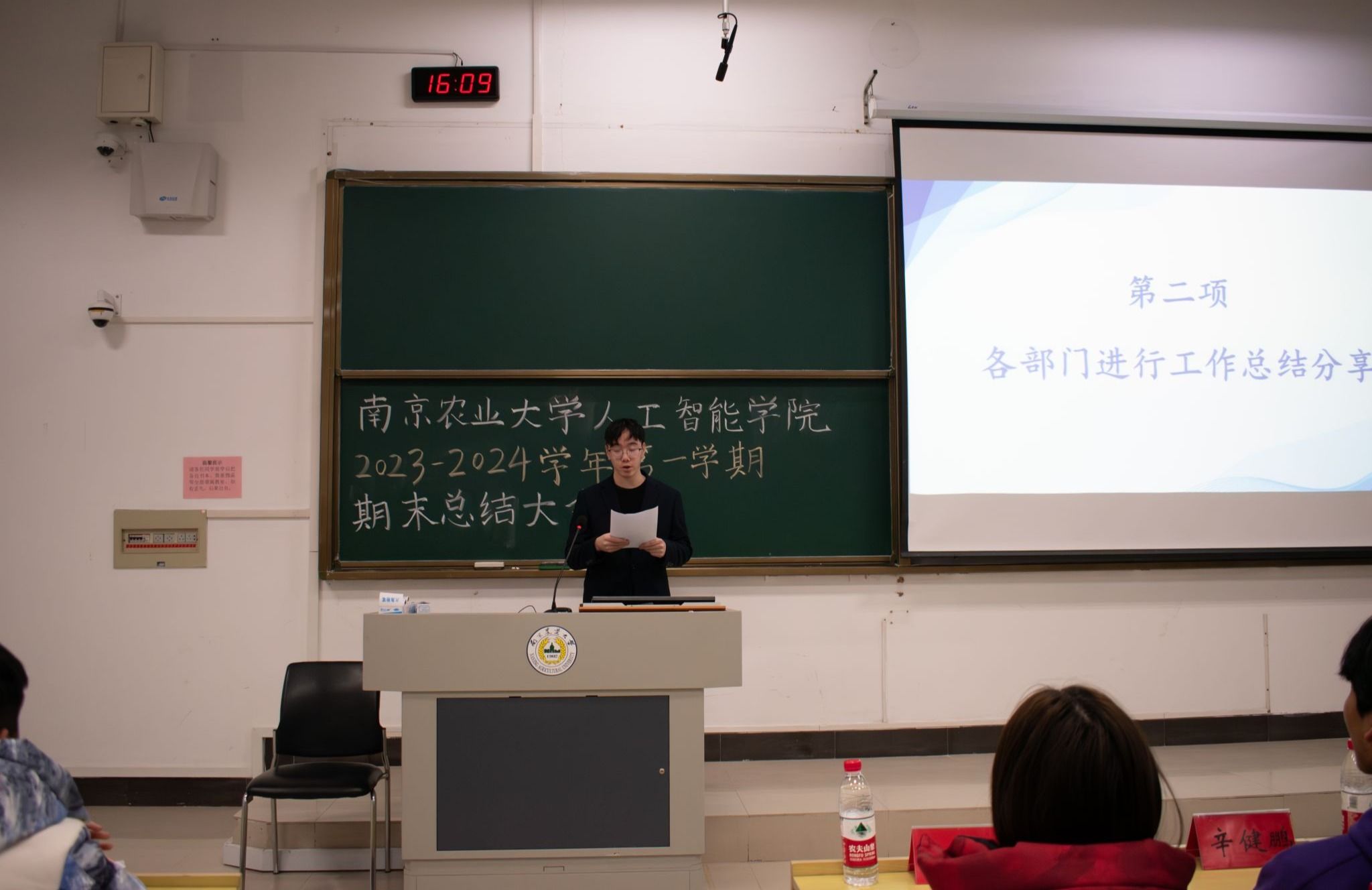 于12月17日,在浦口校区博远楼举办了2023-2024学年第一学期学生组织总结大会。该会议由顾子鑫负责主持,学院学生组织的全体成员出席了本次大会。