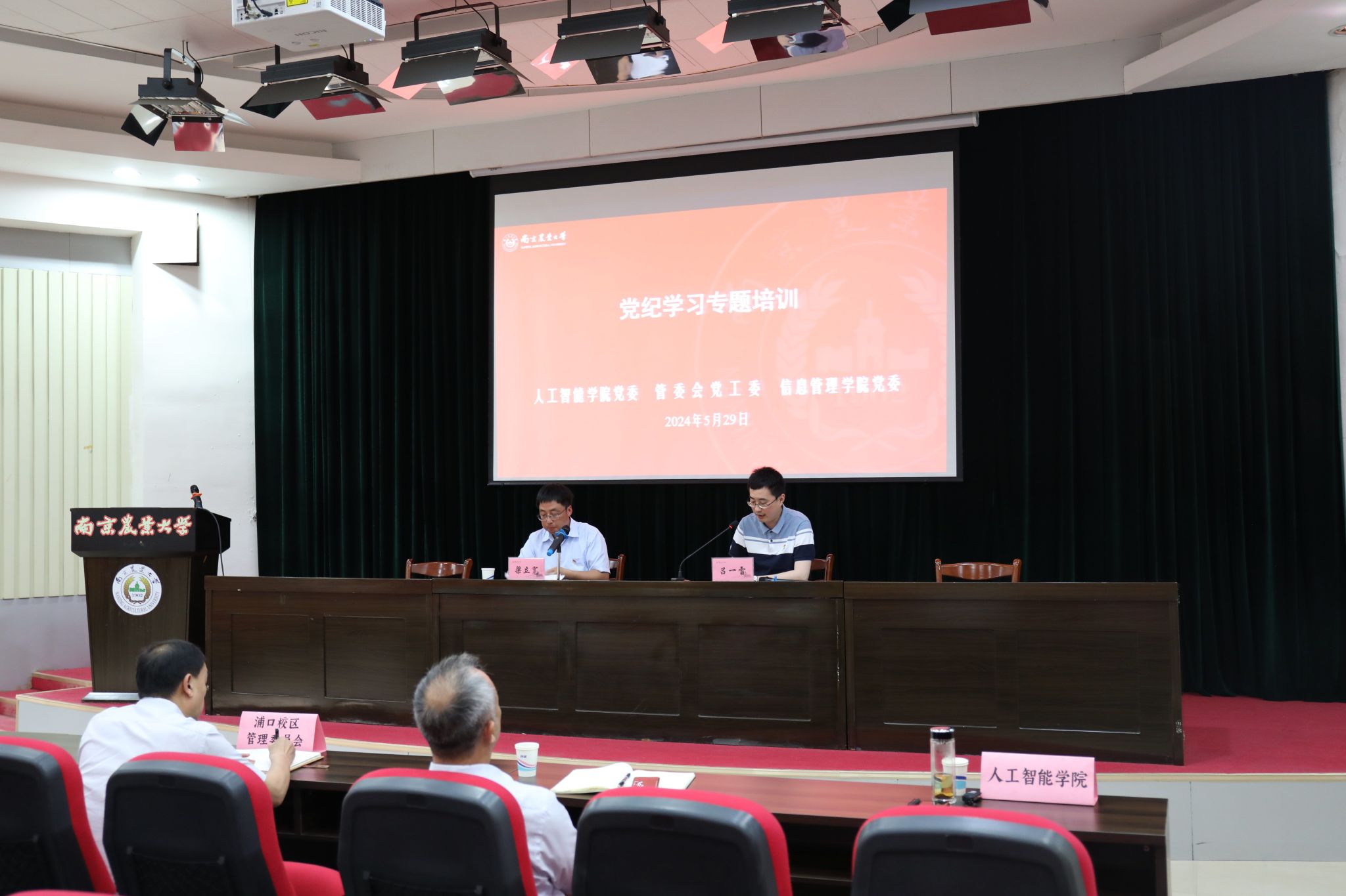 党委联合浦口校区管委会党工委、信息管理学院党委,共同举办党纪学习专题培训,校监察处副处长(主持工作)、纪委办公室副主任(监督检查室主任)梁立宽应邀作专题辅导报告。三家单位领导班子成员、教职工党员参加培训。培训会由奈飞工厂