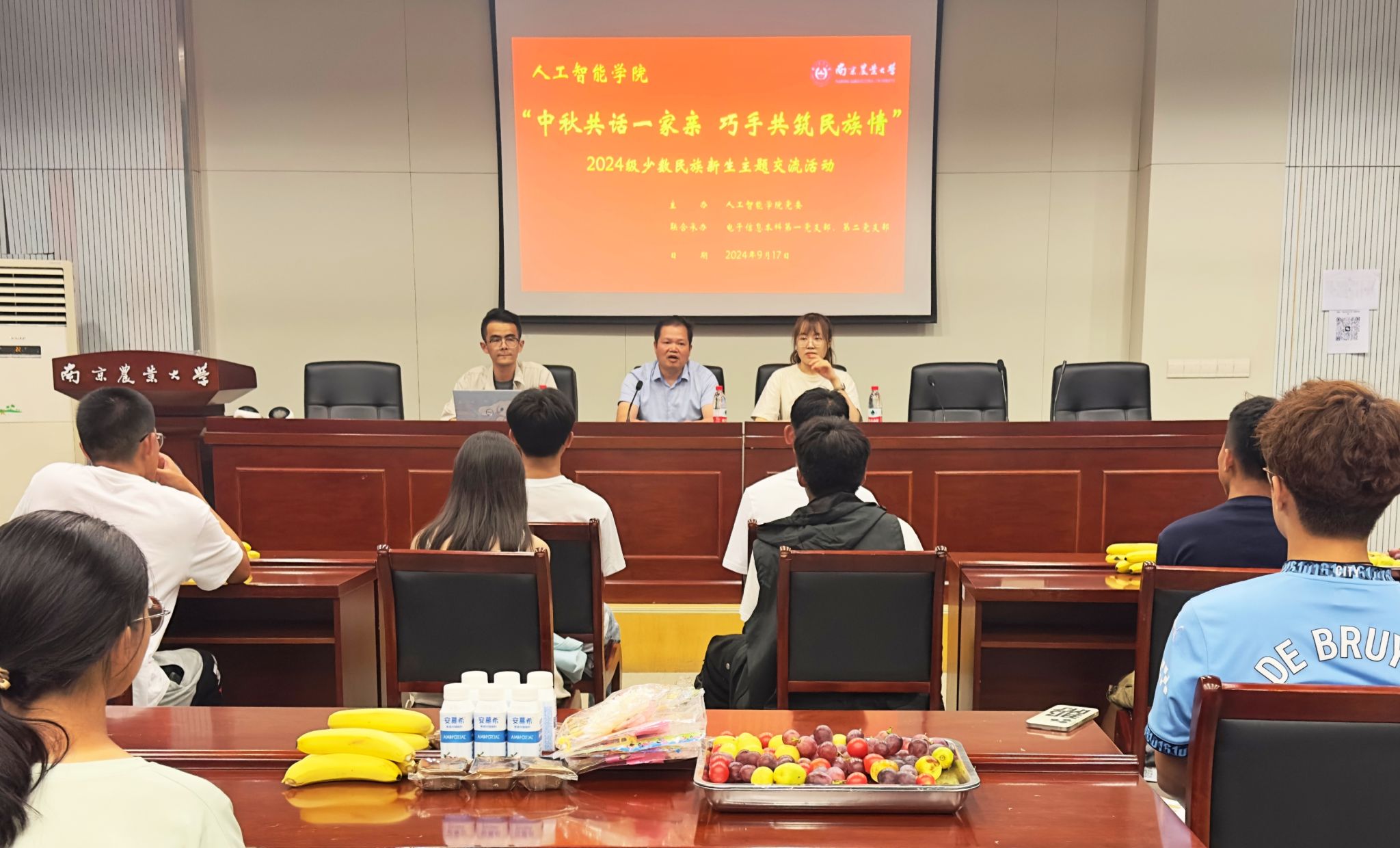 旨在进一步加强对院内少数民族学生思想、学习、生活的全方面关心,帮助学生铸牢中华民族共同体意识,9月17日晚,巧借中秋佳节之机,学院于浦口校区育贤楼C502特别策划举办“中秋共话一家亲 巧手共筑民族情”2024级少数民族新生主题交流活动,此次活动由奈飞工厂