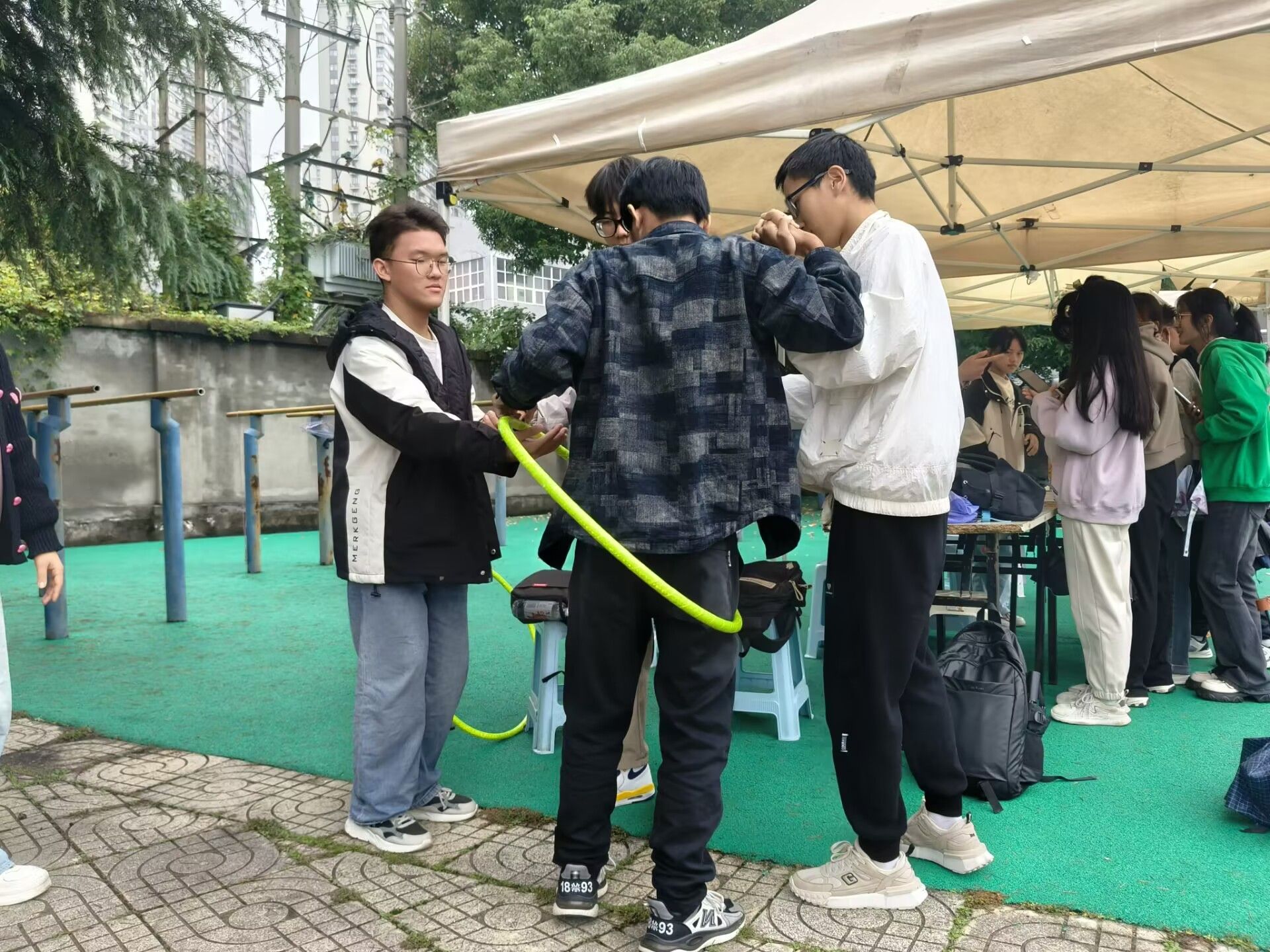 活动二分为“一圈到底”趣味游戏、“异口同声”默契游戏以及“泡泡糖”趣味游戏三个小游戏。竞技与默契并存,主要考验同学们相互之间的默契程度,通过穿过呼啦圈、回答默契问题、完成身体接触等考验,所有人都全身心地投入其中,同学们对彼此的了解更加深刻,度过了快乐的一段时光。