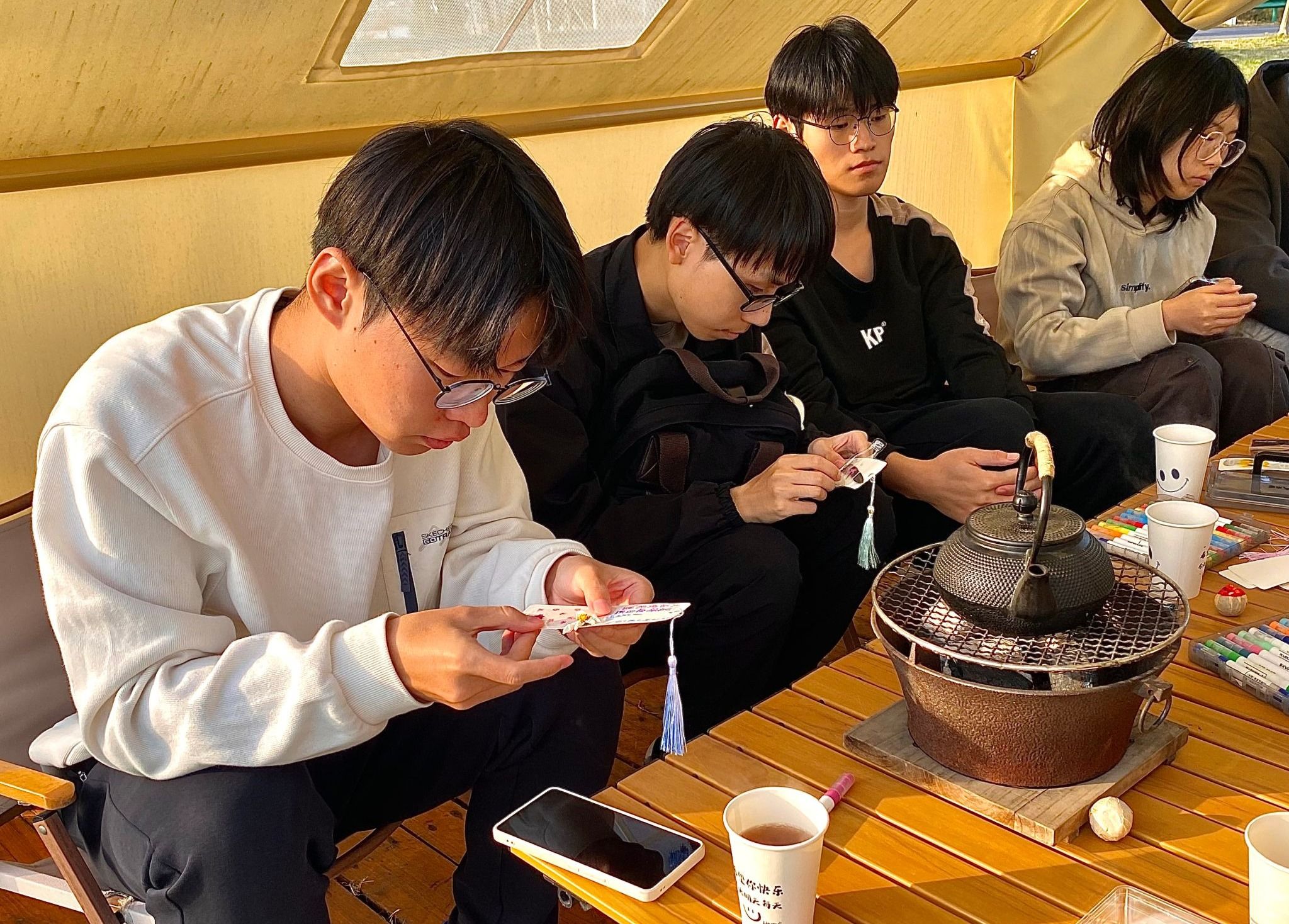 在泥桥人家民宿,志愿者们还进行了蔬菜采摘、挖红薯、体验大锅灶等特色农事体验活动,并一起开展了围炉煮茶、狼人杀、创意书签制作等趣味青年文娱活动,现场气氛热烈,欢声笑语不断,洋溢着青春的活力。