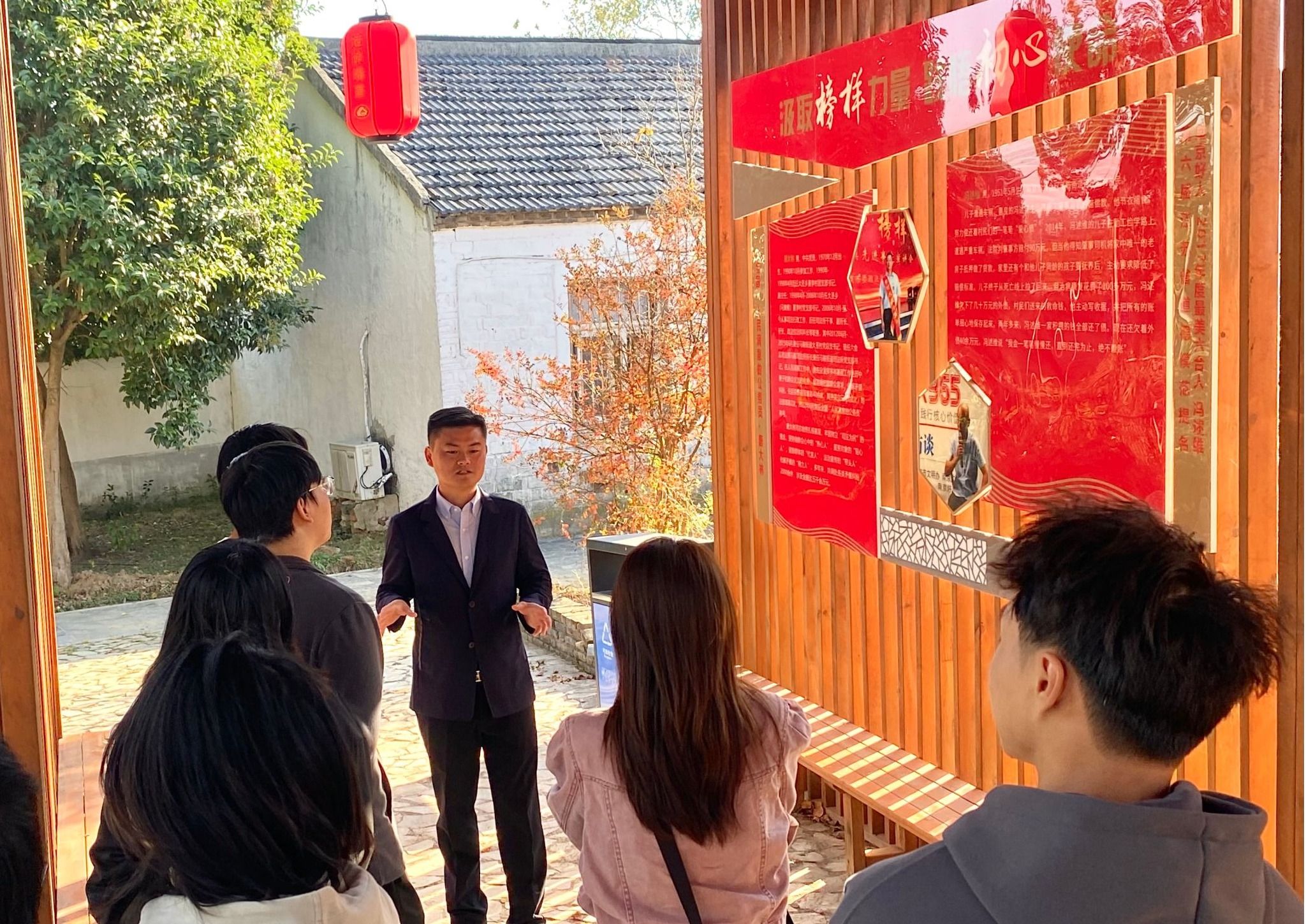随后一行人来到了省级特色田园乡村——马鞍街道泥桥村山陈组,参观了泥桥青年学习社线路与青春助力乡村振兴工作站。 “初心红廊”等红色文化景观记录着中共马集地区第一党支部的红色历史和初心使命,不仅成为这里一道独特的风景,更融入了当地村民的精神生活,化为了敦厚淳朴的民风;“圆梦教室”依托先进的云课程平台系统和设备,联合优秀的志愿队伍,为儿童开展成体系、可持续的线上线下课程活动;“李亚太工作室”里,大家还仔细了解了民歌《茉莉花》的故事。