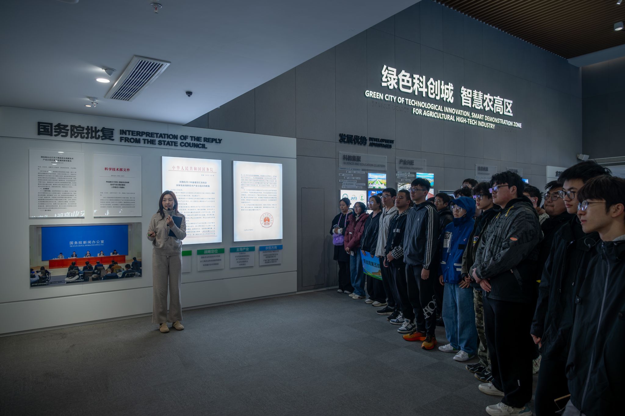 农业高新技术区展览馆中,同学们跟随讲解员的步伐,详细了解了农高区的发展历程、未来规划以及在生物农业、智慧农业等领域的最新进展。白马农业高新技术区的快速发展,展示了中国农业现代化和科技创新的巨大潜力,这激发了同学们对未来科技的无限想象,也激励着他们以更饱满的热情去推动农业科技的发展。