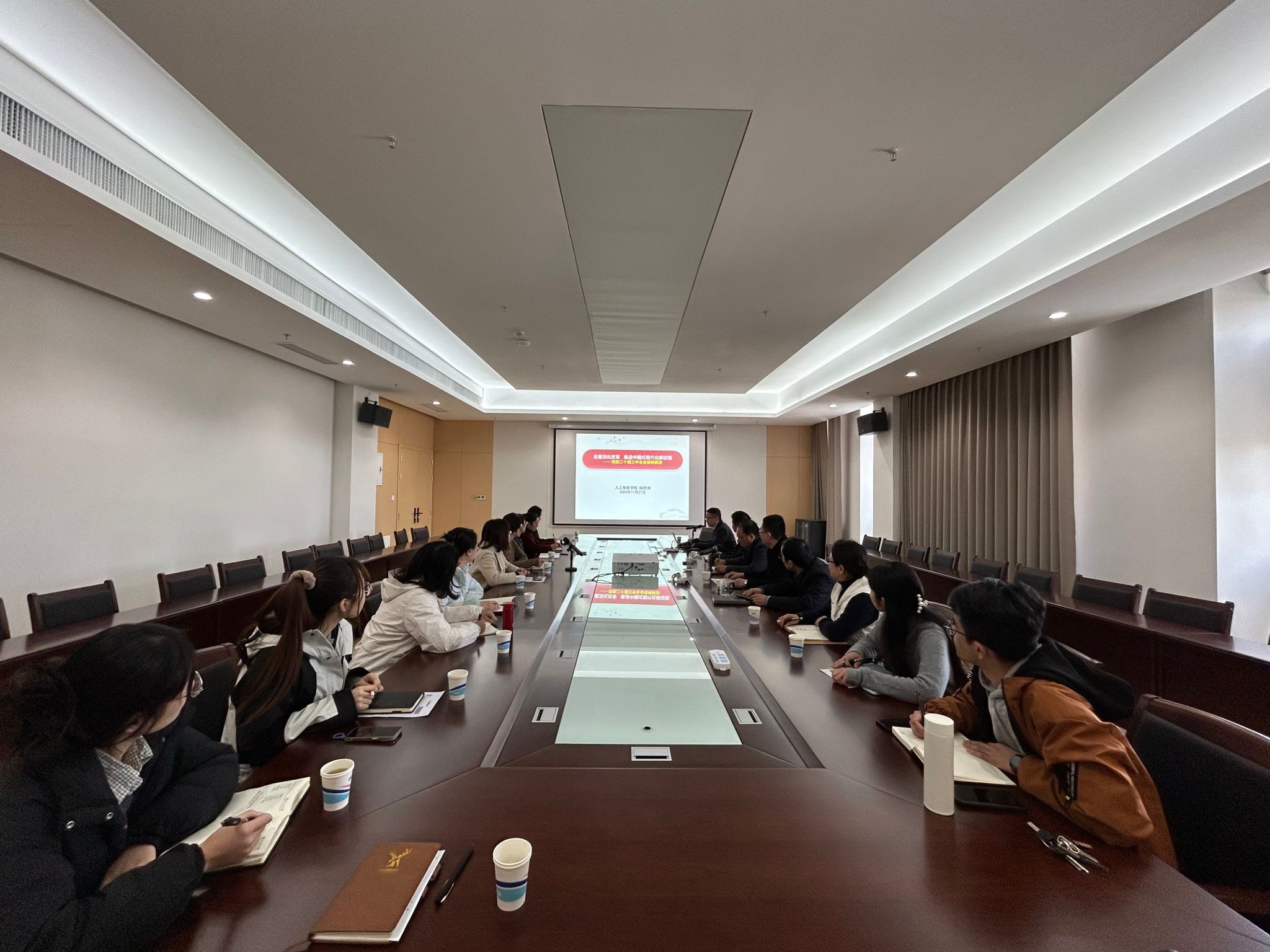 陆明洲讲授《全面深化改革推进中国式现代化新征程——党的二十届三中全会精神解读》专题党课,剖析和讲解了党的二十届三中全会的历史方位与使命任务、进一步全面深化改革的逻辑主线与战略重点、进一步全面深化改革的使命任务和实践路径三个方面的问题,并结合事例对全会精神进行了系统阐释和深入解读,引导大家更好地领会全会的战略部署,更好地理解进一步全面深化改革的重要性、必要性,更好地把握进一步全面深化改革总目标任务和实践要求,切实增强进一步全面深化改革的责任感、使命感。
