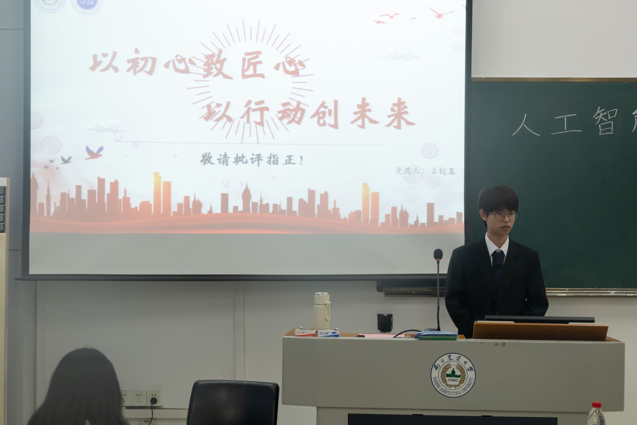 学生组织正部长换届选举章程》后,各候选人依次登台,通过“3分钟主题演说+2分钟即兴答辩”展现个人风采。
