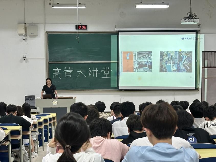 特邀中国电信南京分公司人力资源部副主任李盈女士走进“高管大讲堂”,为同学们带来题为《连接未来——如何成为一名“电信人”》的专题讲座。