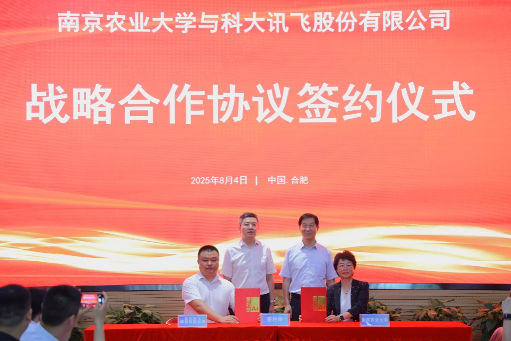 建设发展给予的关心与支持表示感谢。她指出,南农与科大讯飞开展战略合作恰逢其时,是贯彻落实习近平总书记关于农业强国、教育强国、《全国智慧农业行动计划(2024—2028年)》等精神的重要实践,同时也是深化校地合作的重要举措。未来,校企双方应以智慧农业学院共建和智慧农业重点实验室重组筹建等为主要抓手,聚焦示范性特色学院建设、智慧化科教平台打造、数字化教育教学、新农科拔尖创新人才培养、大模型在农业领域的创新应用、 “一带一路”倡议服务等方面,进一步拓展合作的广度与深度,携手打造农业领域AI应用的示范标杆,构建“教育-科技-人才-产业”四位一体的协同发展新格局。