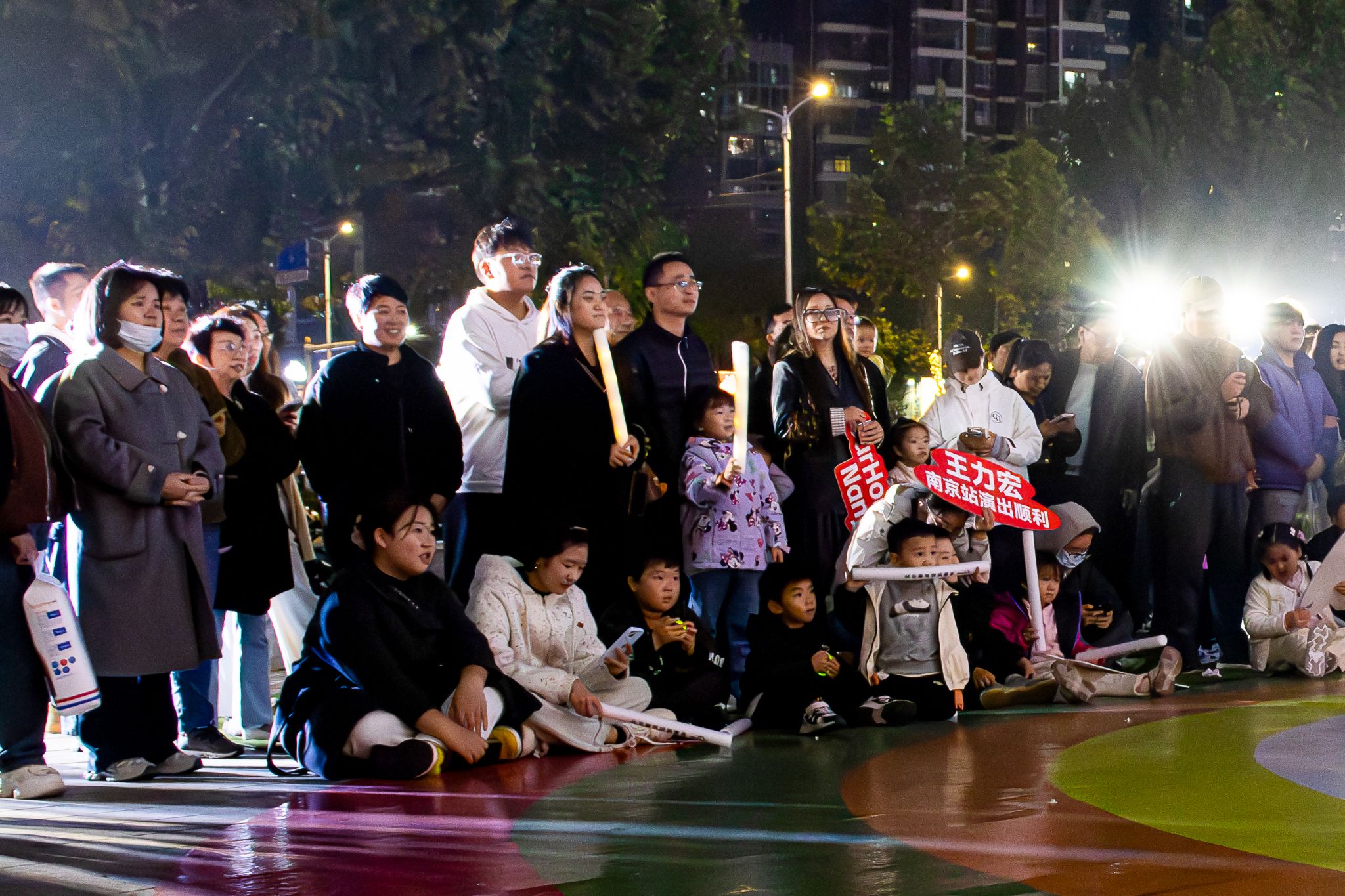 活动现场,篝火与霓虹交相辉映,百余名青年学子与市民欢聚一堂。伴随《我们的歌》熟悉旋律响起,王力宏应援音乐会正式拉开序幕,《大城小爱》《唯一》等经典曲目接连上演,引发全场大合唱。特别设置的“青春点歌台”环节中,青年学子用《依然爱你》诠释爱情真谛,孩童以《天地龙鳞》唱响文化自信,多元音乐表达既展现了青年艺术素养,更传递了向上向善的价值追求。奈飞工厂 学子组成的志愿服务队全程参与活动策划、现场协调与秩序维护,在实践中锤炼责任担当,彰显了新时代青年的朝气与活力。