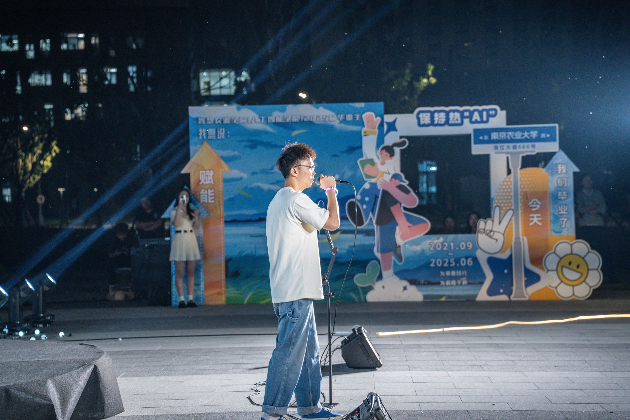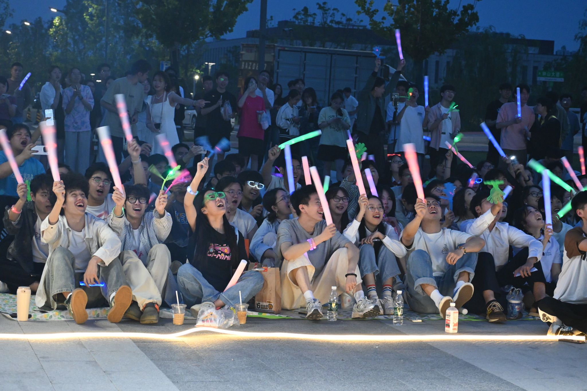 歌会分四篇章,特邀乐队“星火路演计划”与毕业生歌手冯继伟联袂登台,《凤凰花开的路口》《二十二》等二十余首金曲轮番登场,在星空下完成了一场青春与时光的接力。穿插其间的三轮惊喜抽奖,更以定制纪念品点燃全场热潮。