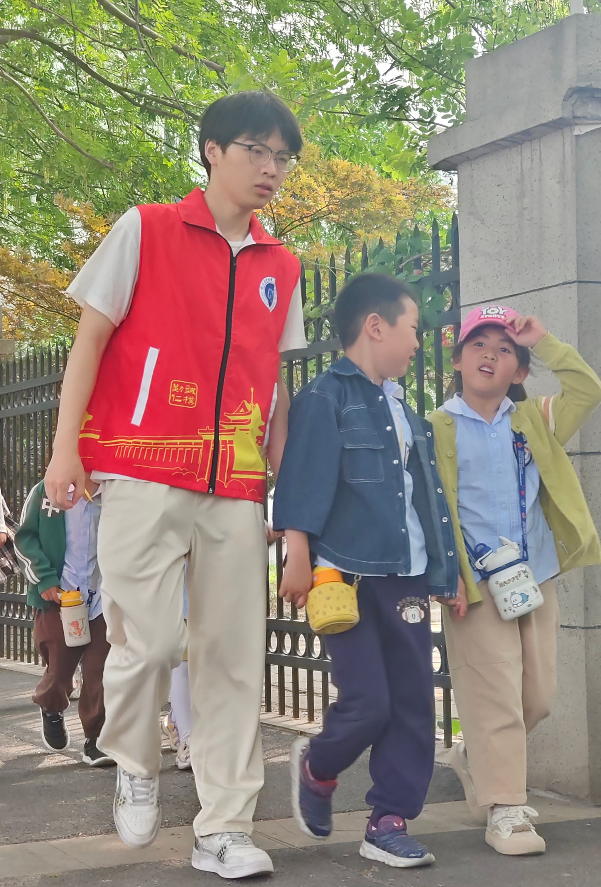 下午三时,身着志愿马甲的志愿者与幼儿园教师组成“护苗小分队”,以“大手牵小手”的方式,带领60余名小朋友安全抵达校园。在青年志愿者协会与红十字会成员的组织下,孩子们与志愿者通过“自然伙伴”结对游戏迅速破冰,形成六个创意小组,开启了别开生面的自然探索之旅。