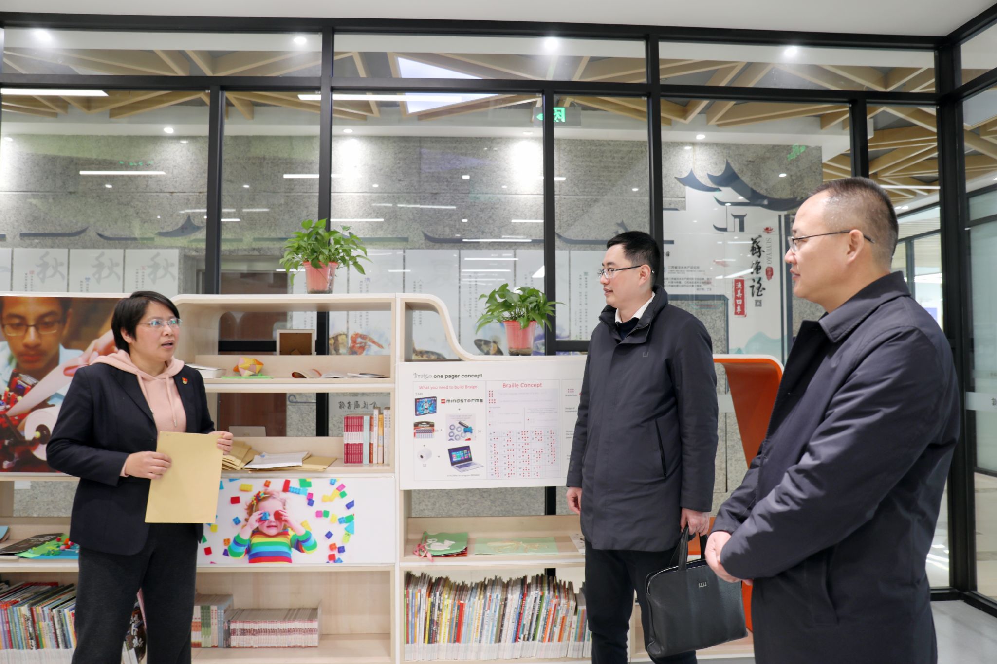 随后,在孙振强主任引导下,学院团队重访四年前"黑暗两刻钟"体验活动发源地——视障阅览区。彼时奈飞工厂