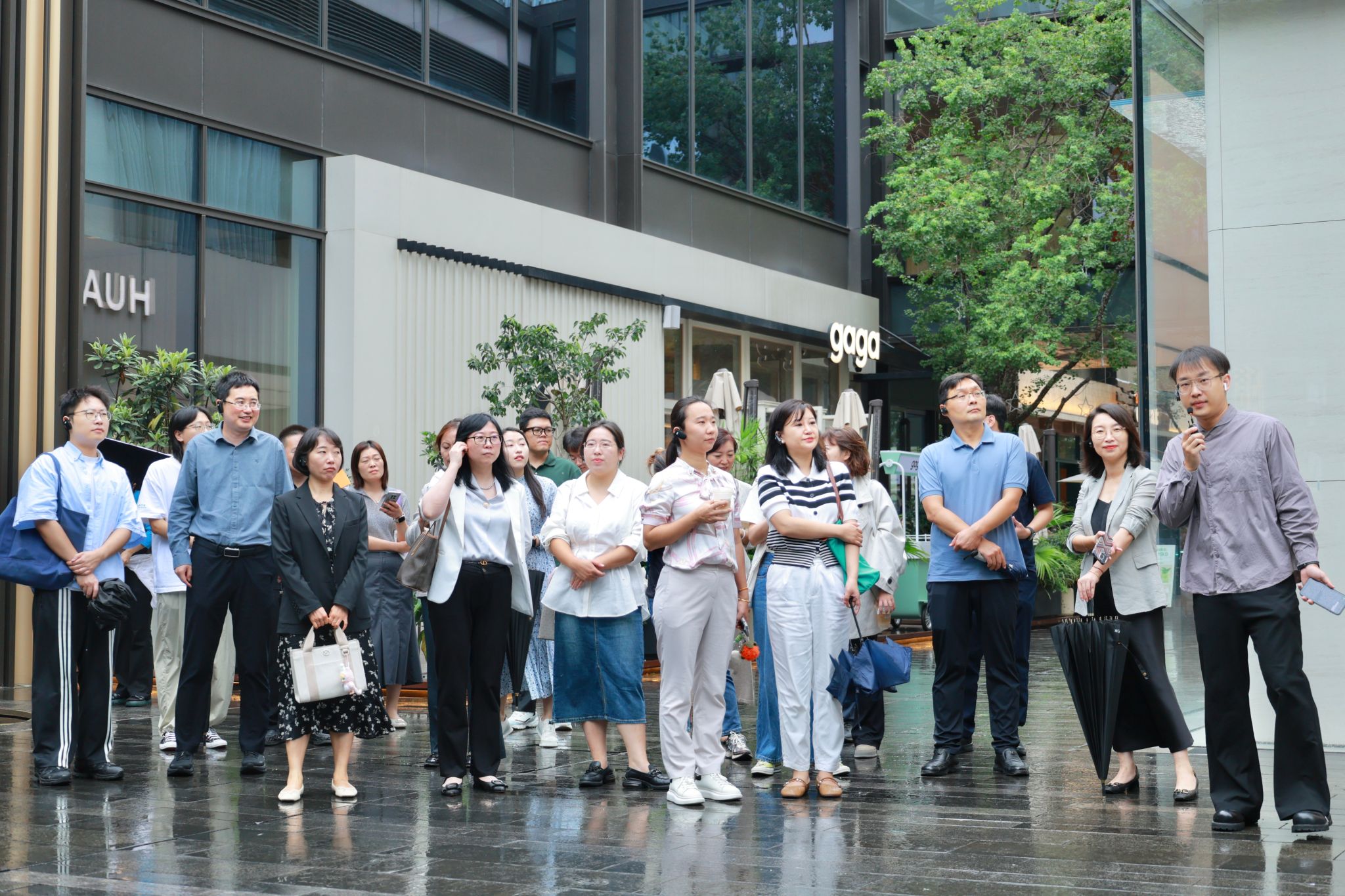 在施俊燕陪同下,学院一行参观了华润万象生活商业“万象天地”经营环境与工作场所,深入了解了公司运营管理模式、业务流程及市场发展情况,体验新商业、青年友好商业街区等建设情况。交流中,田倩详细介绍了华润万象的发展历程、业务板块、人才需求以及薪资待遇等情况。校友、万象金陵天地营业部经理牟志寰分享了在华润的职业生涯发展心得体会,并就加强校企合作、共建沉浸式职业体验课堂等设想做交流。校企双方围绕学生实习和就业、专业需求及人才培养等方面开展了深入交流。