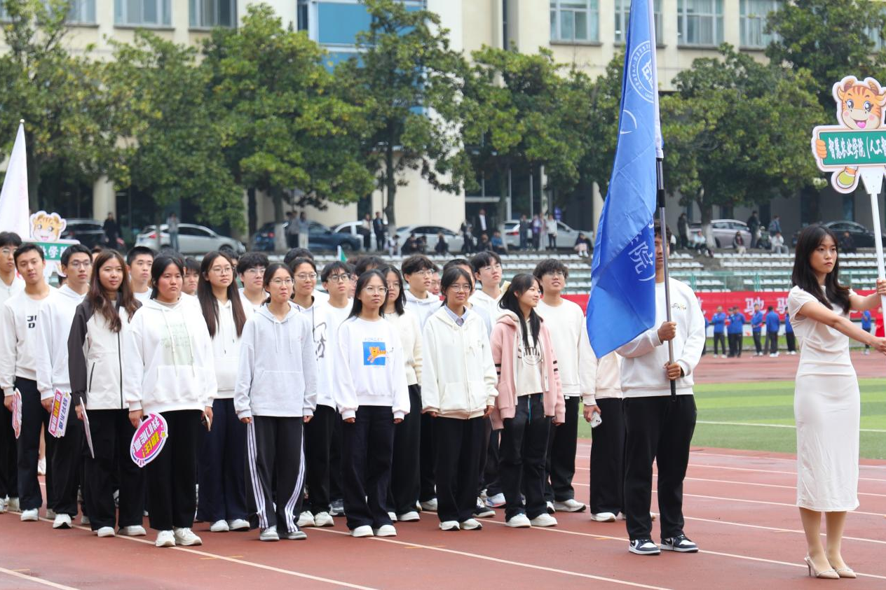 学院方阵代表队气势磅礴,智农学子迈着整齐划一的步伐,呐喊着“智农先锋,赛场称雄。AI学子,气势如虹”的口号,展现出学子们的青春朝气和精神风貌,为观众留下了深刻印象。