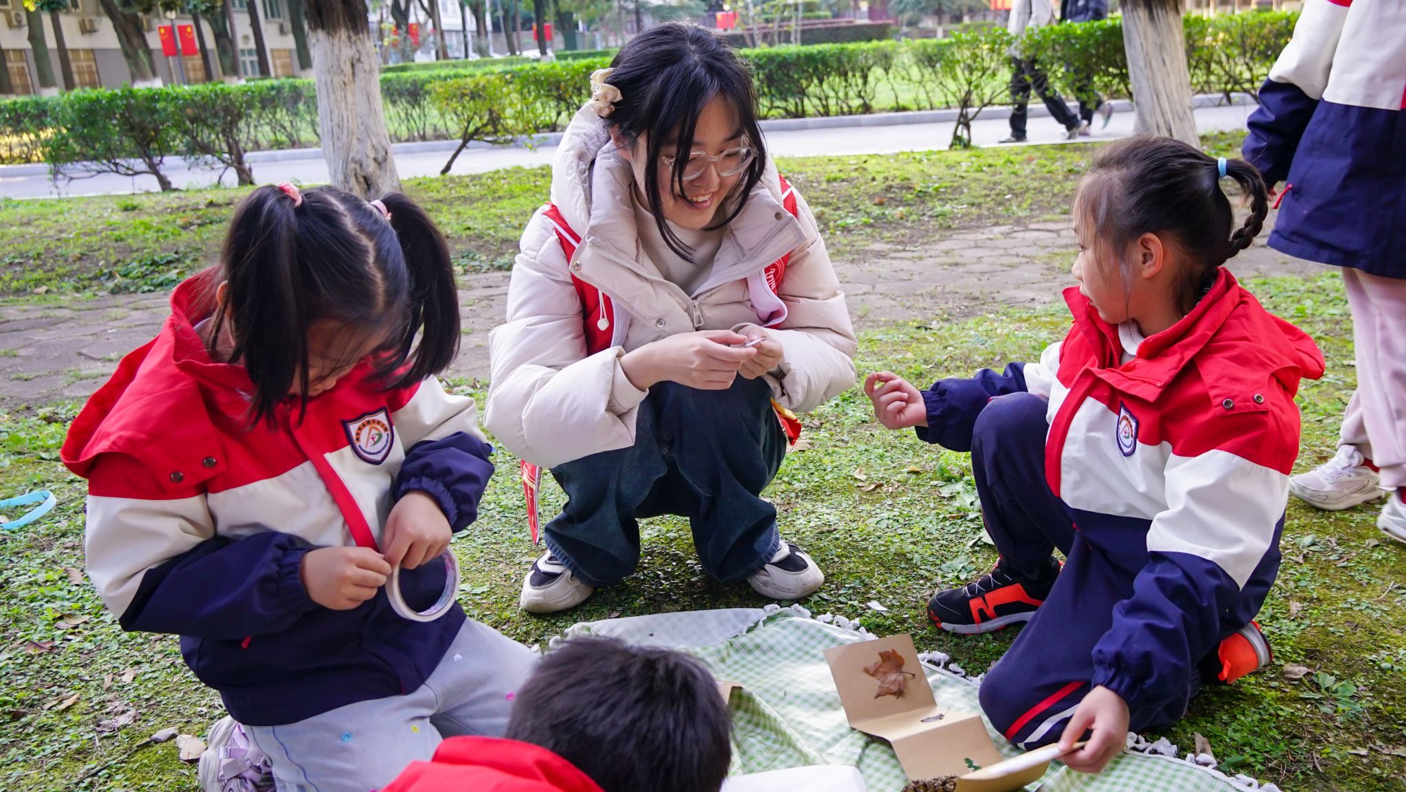 这场以叶脉拓印为纽带的活动,不仅让孩子们在触摸自然中解锁了手工创作的乐趣,更在大学生与小朋友之间架起了一座充满爱与温暖的桥梁。志愿者们说:“看着孩子们的笑脸,感觉所有的疲惫都消失了,原来陪伴也是一种成长。”