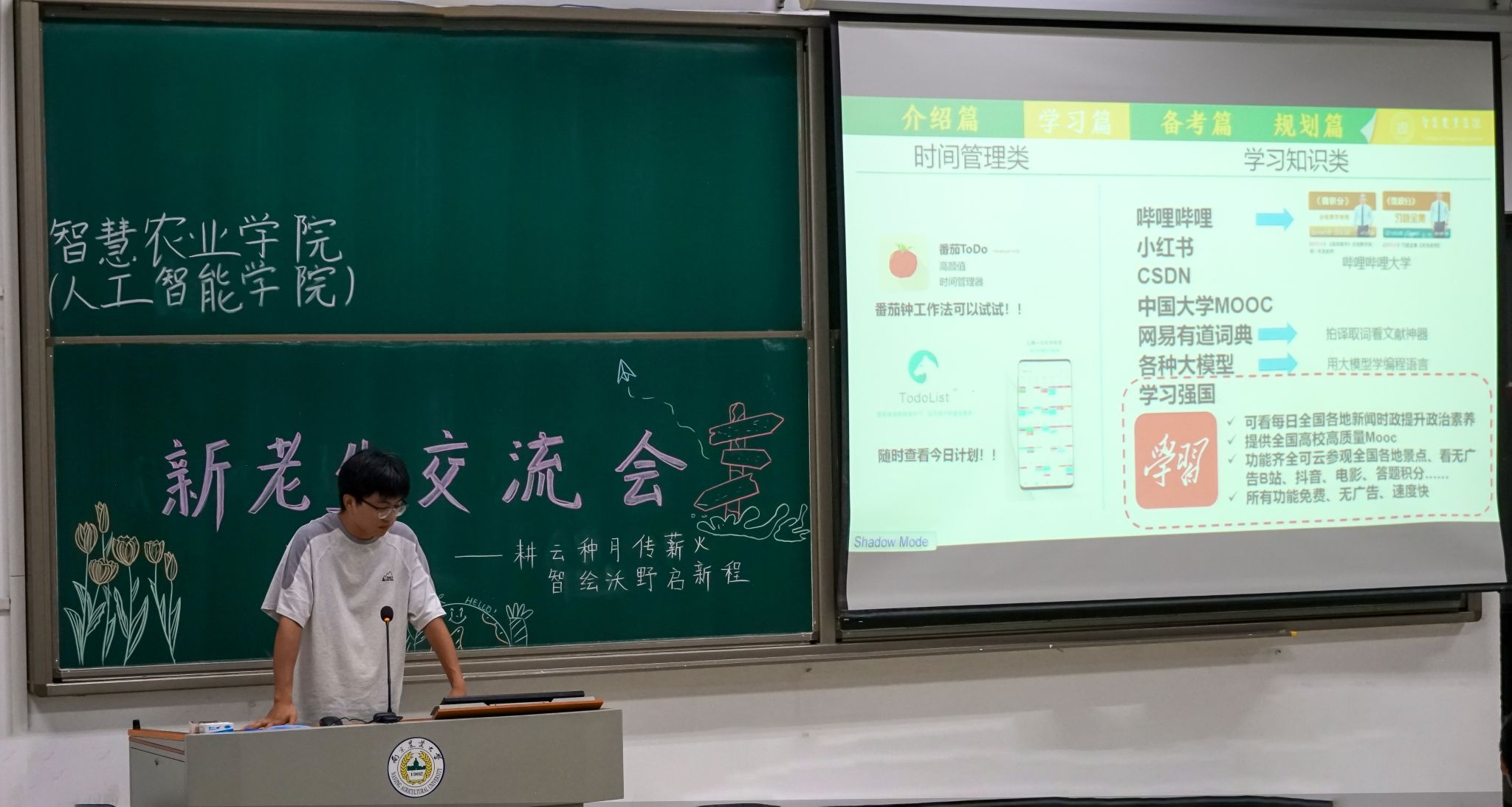 9月27日,新老生对话交流会在博远楼举行。电信232班张雨珊学姐分享“三阶管理法”(每日复盘-周计划-月度校准);数据232班舒新宇学长讲解“科研入门三部曲”(文献检索-课题设计-导师沟通);智慧农业221班刘义轩学长对比考研与就业准备路径。自由交流环节,新生围绕跨学科学习、实验室安全等问题提问,累计解答疑问40余条,现场互动热烈。