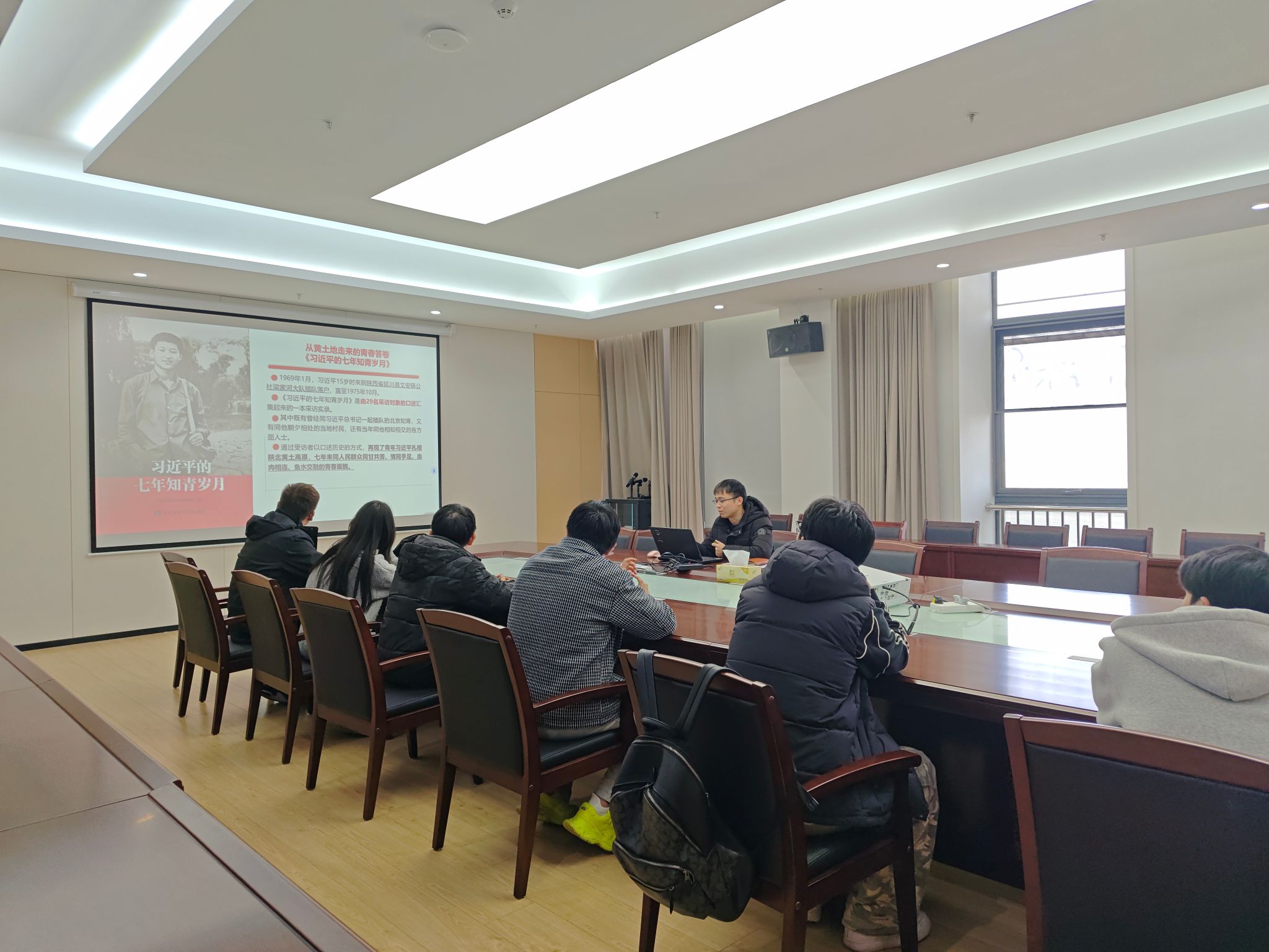 座谈会上,学院领导首先代表学院向少数民族学生致以亲切问候,详细询问了同学们在学业学习、校园生活、文化适应等方面的情况。领导强调,学院始终高度重视民族团结工作,将持续为少数民族学生搭建成长平台,在政策扶持、学业指导、生活帮扶等方面提供全方位支持,鼓励同学们珍惜校园时光,传承艰苦奋斗精神,主动融入集体,在青春赛道上勇毅前行。在集中学习环节,师生共同研读《习近平的七年知青岁月》,通过回顾青年习近平扎根陕北梁家河、与群众同甘共苦、实干为民的青春历程,深刻感悟其深厚的为民情怀。同学们围绕书中“扎根基层、勤学善思、勇于实践”等核心内容展开热烈讨论,纷纷分享自身求学路上克服困难的经历,交流对“青春在磨砺中成长”的理解。互动交流环节中,学生代表结合校园生活实际,就学业规划、文化融合、就业发展等问题积极建言献策,师生间的真诚沟通进一步拉近了距离,凝聚了民族团结的向心力。