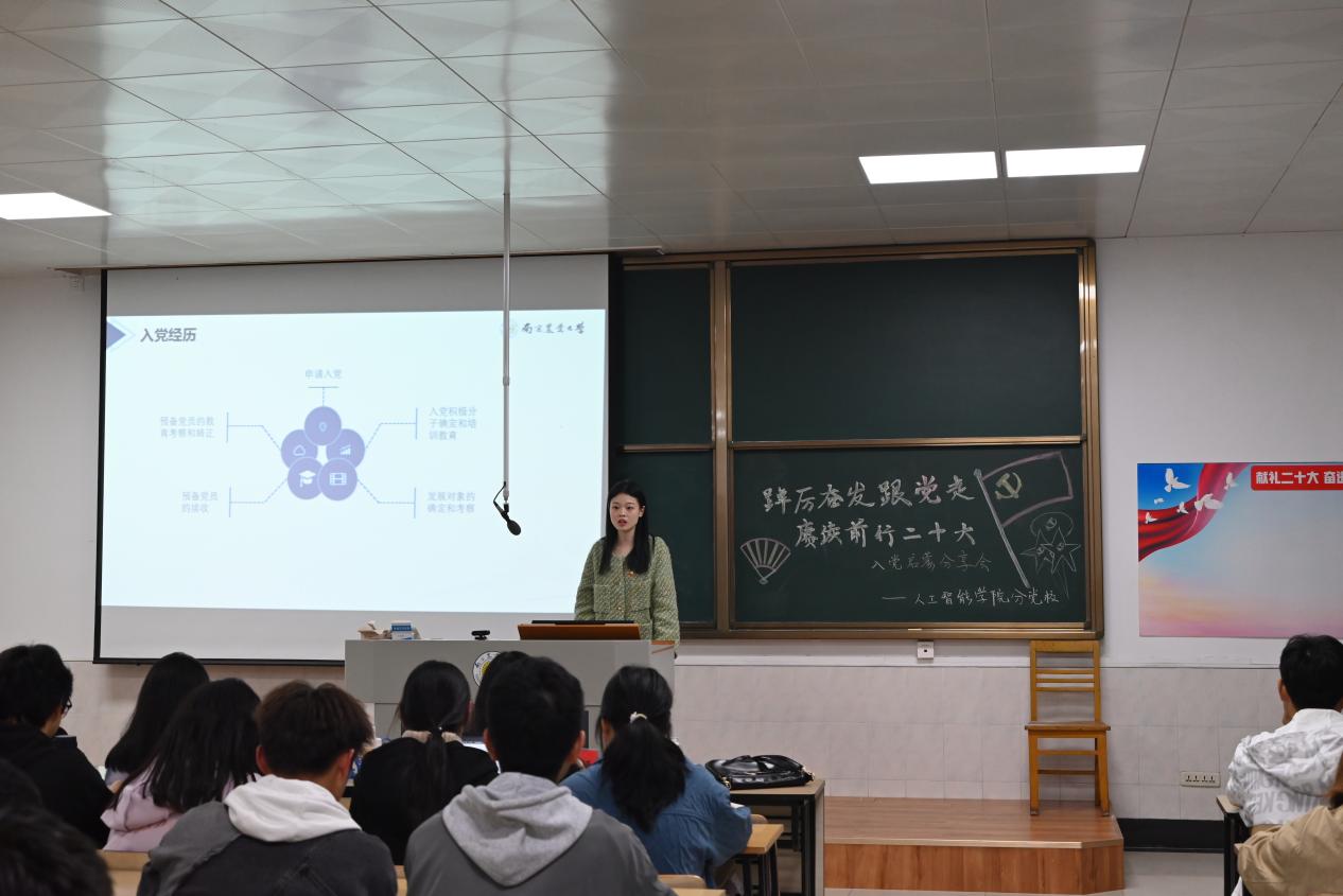 为引导新生积极向党组织靠拢,学院分党校南靖妍同学图文并茂地从党的理论与实践、学生党员发展规范和入党要求展开,并详细介绍了入党动机、入党条件、入党流程,多方面为新生释疑解惑,分享入党常见问题和成长经验,使新生对如何加入党组织有了更加清晰的认识,激发了同学们早日加入党组织的愿望和热情。