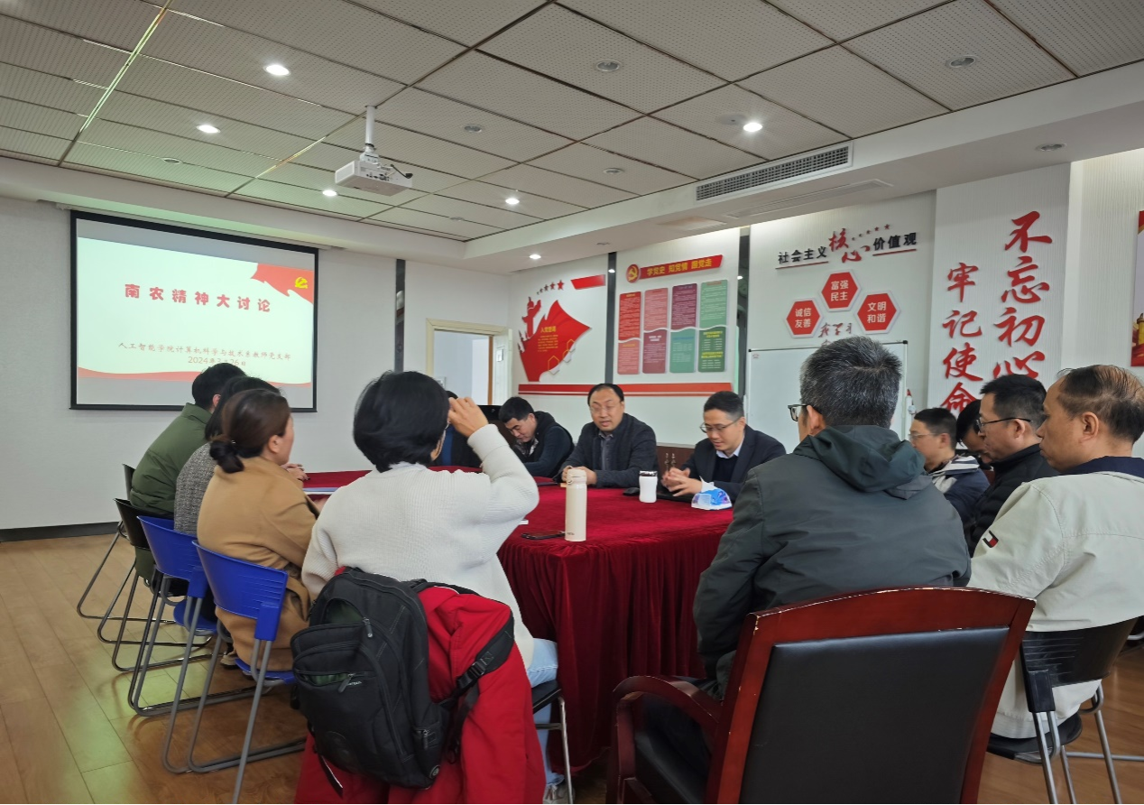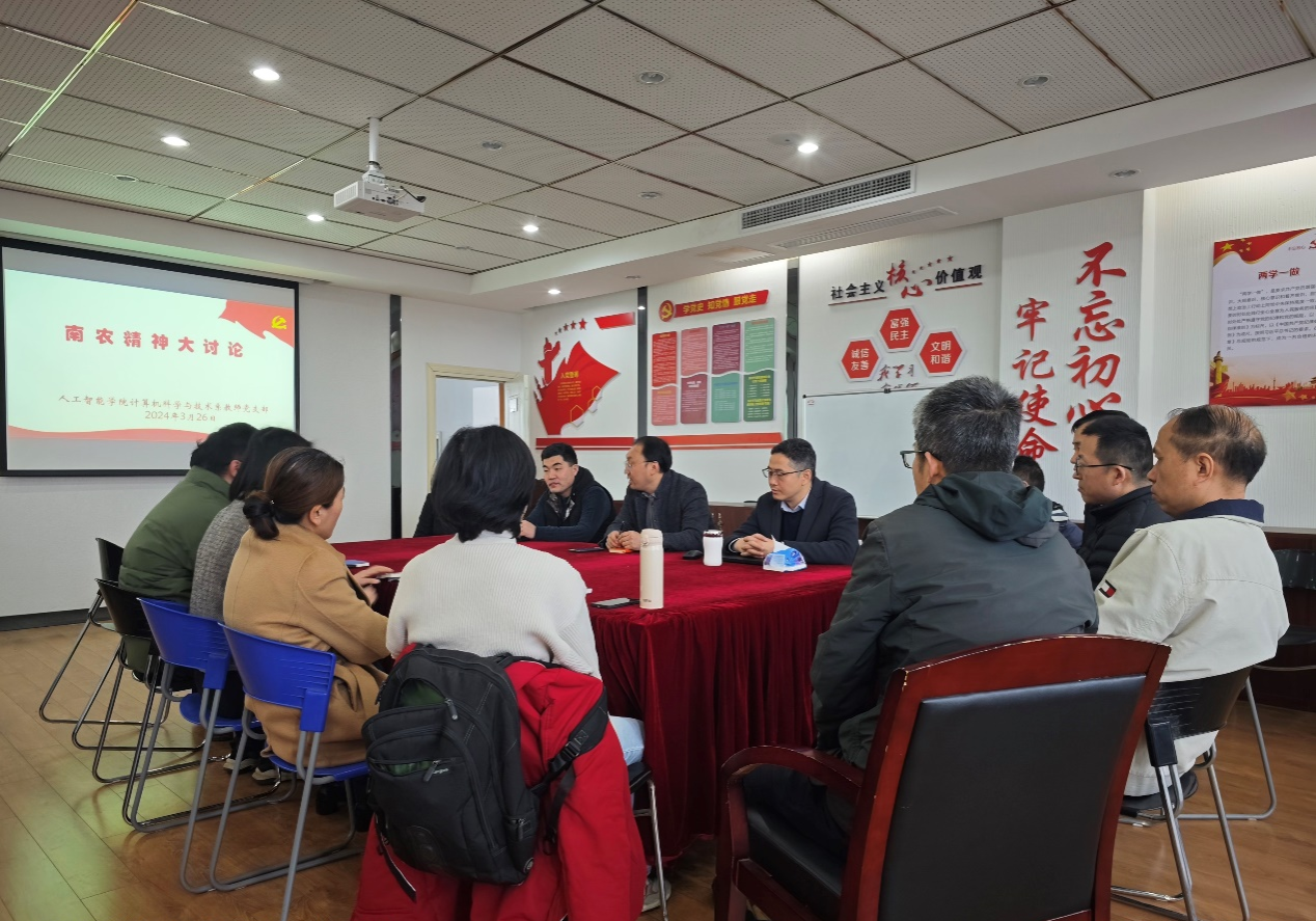 3月26日上午,计算机科学与技术系教师党支部在卫岗校区召开“新时代南农精神”大讨论活动,旨在深入探讨学校秉持的精神内涵和核心价值观,进一步凝聚共识,推动学校和院系高质量发展。学院副院长(主持工作)陆明洲,全体支部成员及系教师参加会议。会议由支部书记胡滨主持。