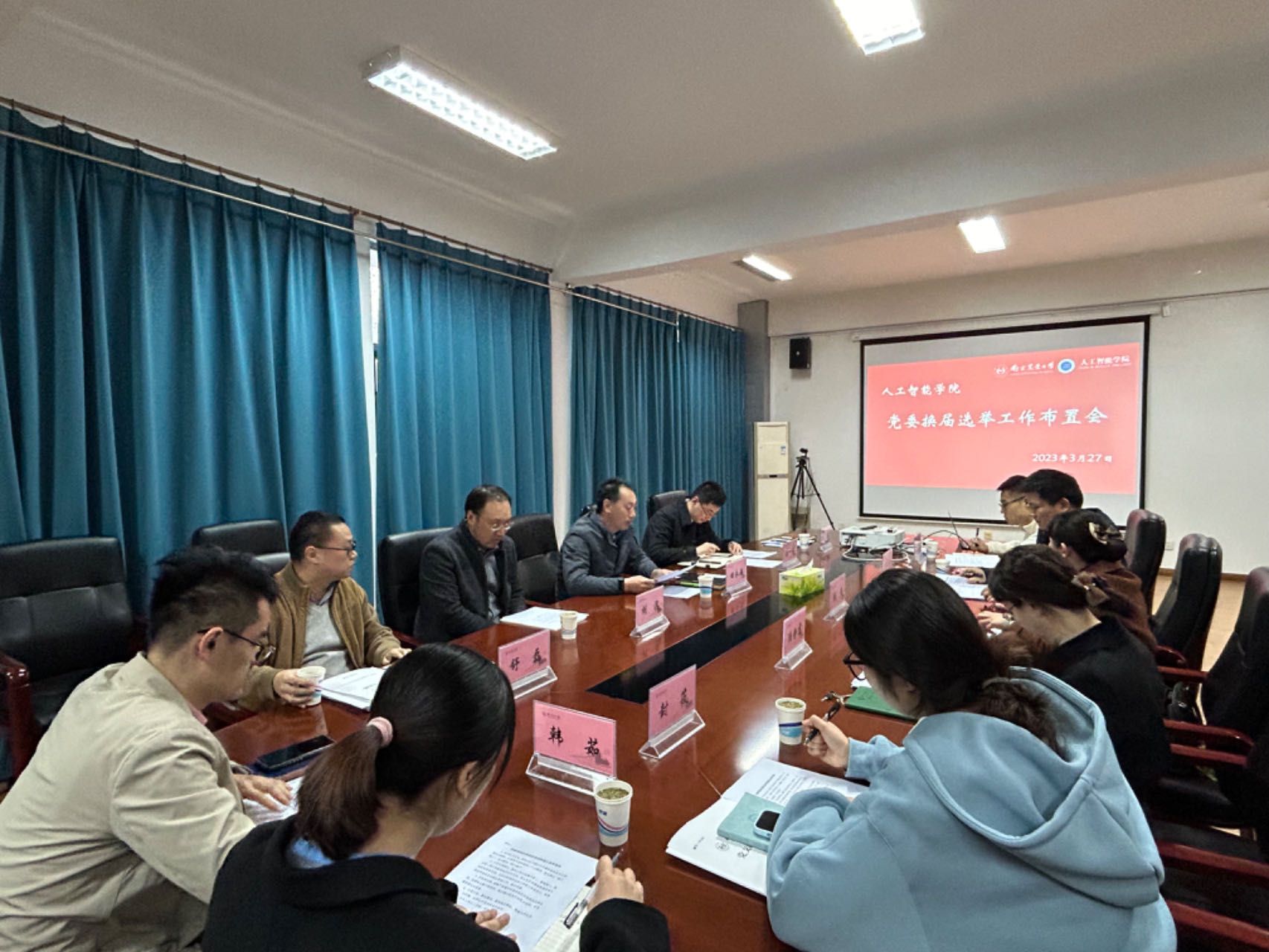 3月27日下午,学院在育贤楼C402会议室召开党委换届选举工作布置会。院党委书记田永超出席会议并讲话。院党委副书记吕一雷,全体党支部书记,组织员参加会议。