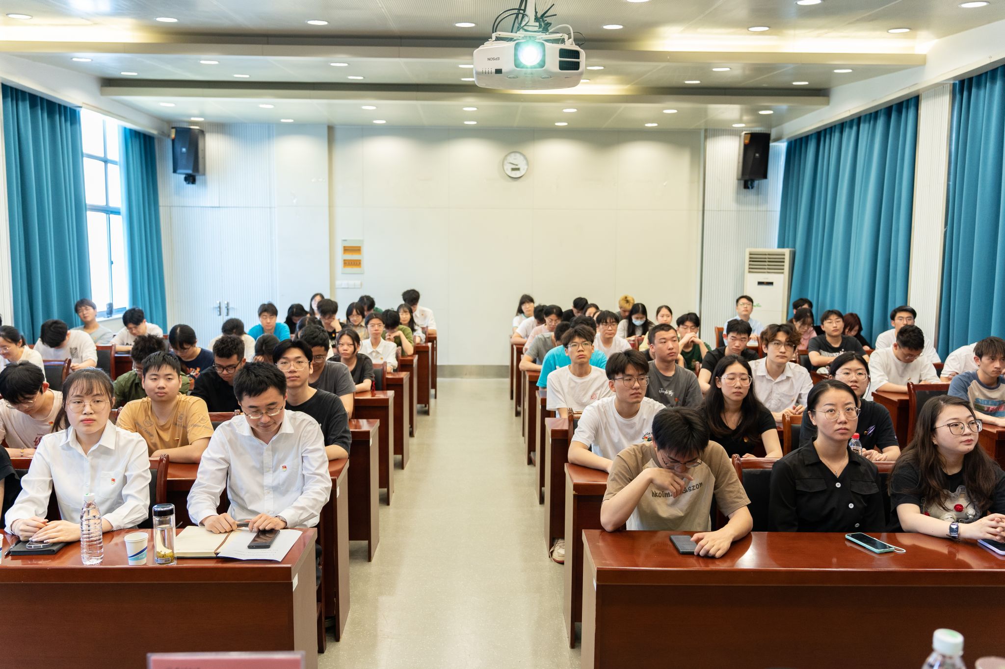 在育贤楼C502会议室召开2024届毕业班党员廉洁从业教育大会。学院党委书记田永超讲授纪律党课,学院党委副书记、纪检委员吕一雷主持会议。学院本科生辅导员李洪、于佳琪,以及95名本研毕业班党员参加大会。