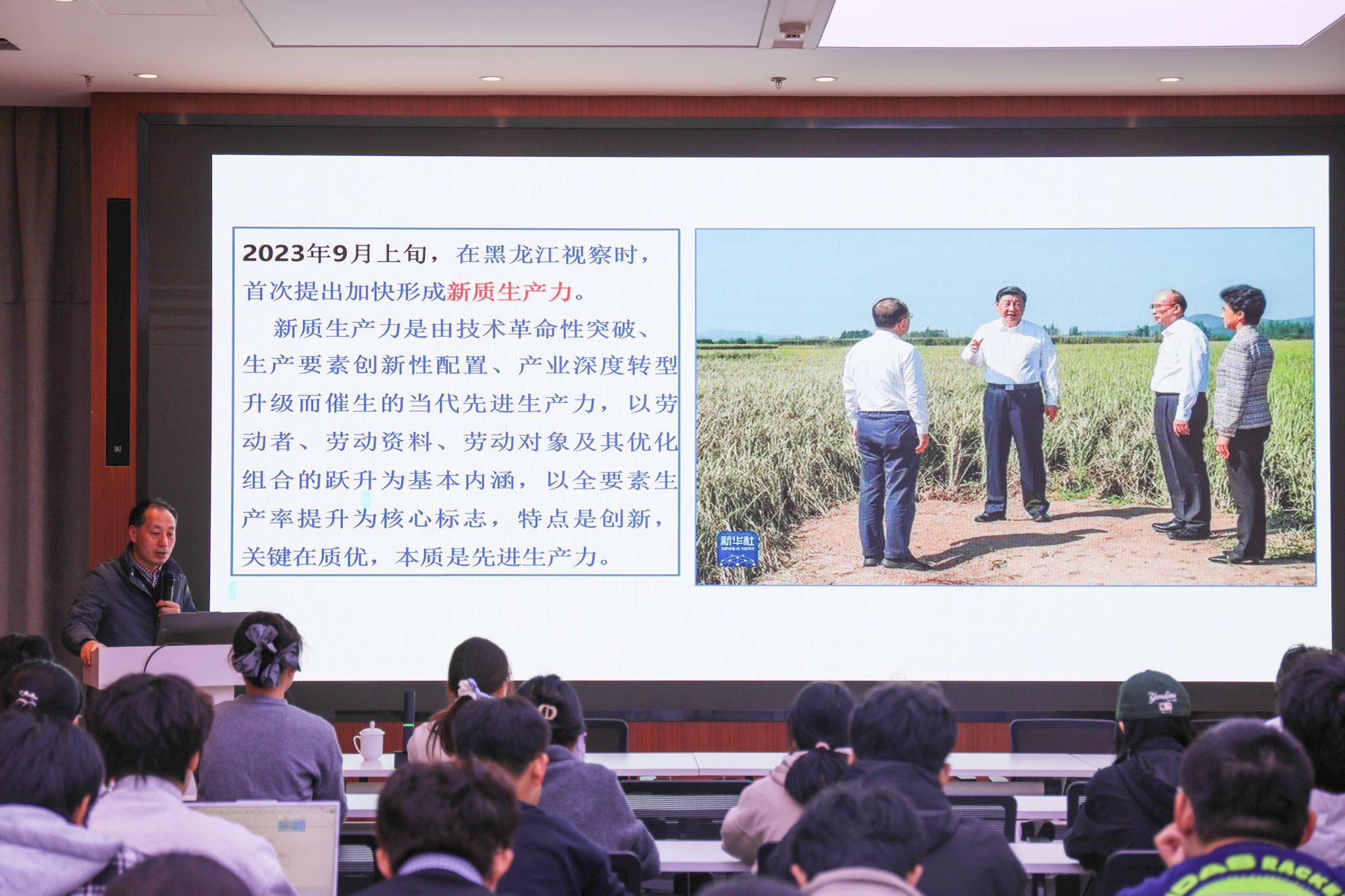 常务副院长田永超教授以“智慧农业创新驱动农业强国建设”为题,在白马基地为师生讲授了一堂内容丰富、思想深刻的专题党课。党课由学院党委副书记吕一雷主持,组织员张鸣、实训中心章世秀、本科生辅导员封筱以及2023级学生代表共同参加。