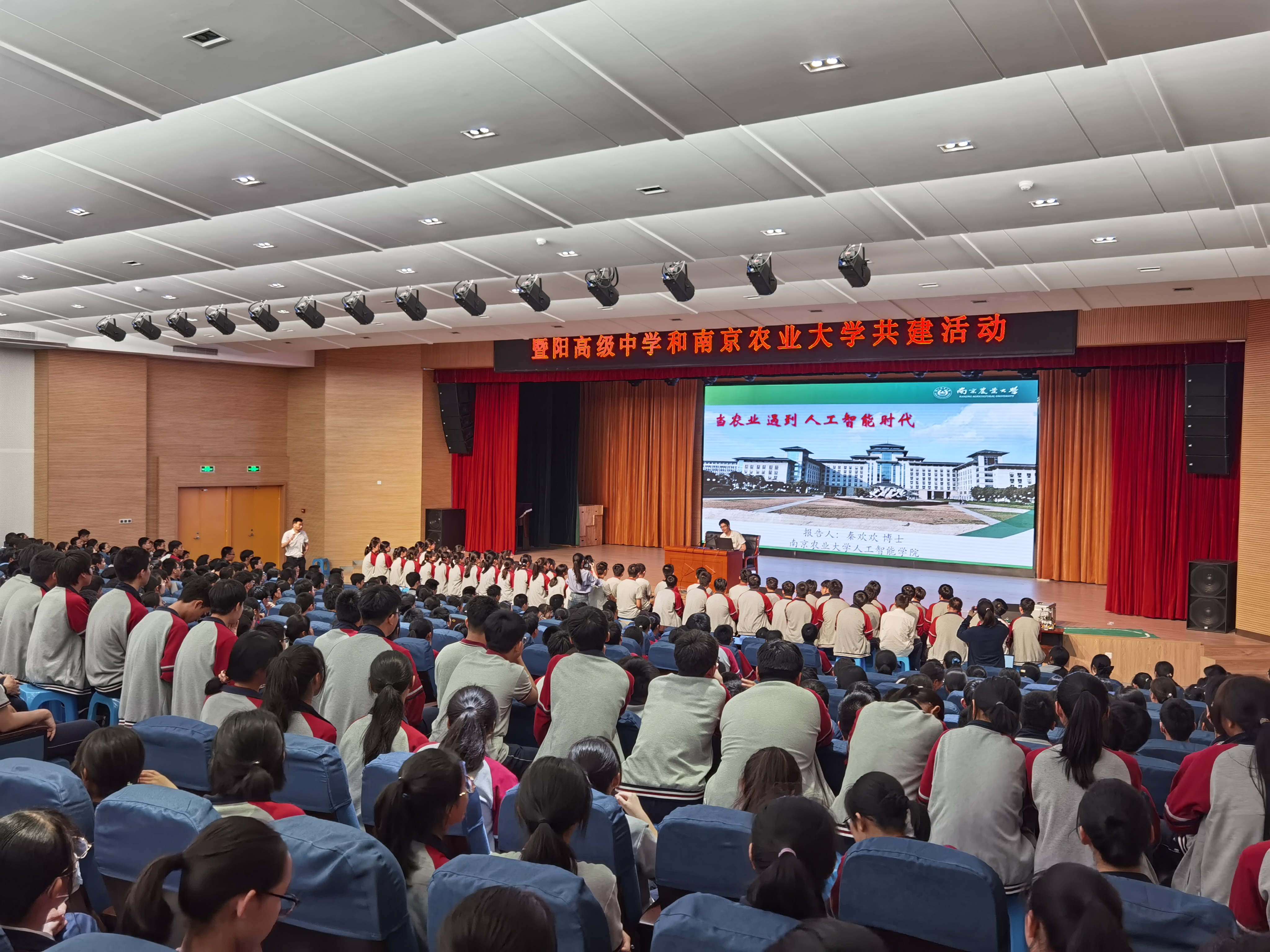 秦欢欢老师、2019届校友任乔牧、学生工作办公室副主任湛斌、AI工作坊本科生骨干成员等师生一行6人,赴生源基地中学张家港暨阳高级中学开展招生宣传暨科普讲座进中学活动。