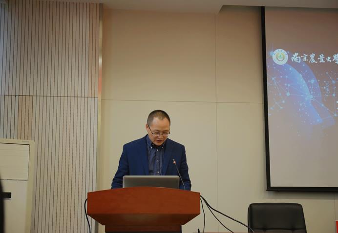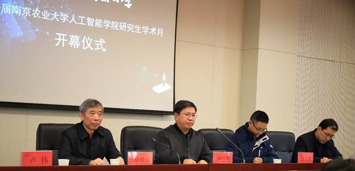 院研究生会执行主席周子俊陈述了学术月活动安排,具体包括第十七届研究生神农科技文化节之“我与专家面对面”、“名师伴你行”学术沙龙、国奖分享交流会、就业指导座谈会、第一届本研交流会之“谈学说AI,研途引航”以及闭幕式暨学术月总结会六项活动,并鼓励研究生同学们踊跃参与、积极学习。