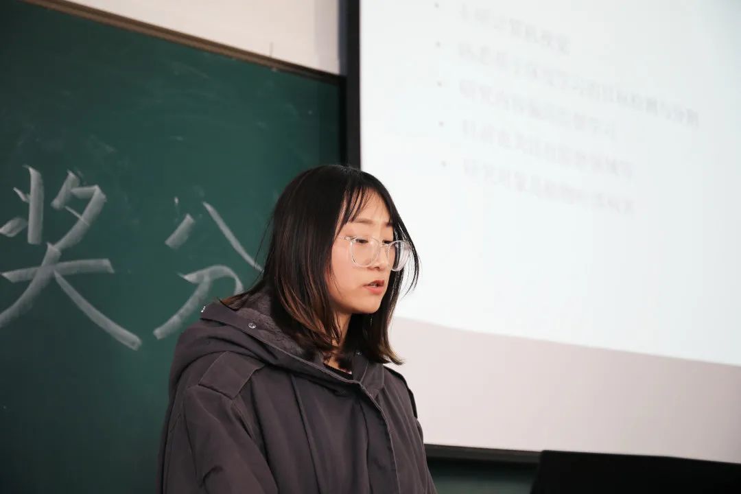 贾馥玮从自己的研究课题内容和科研经验分享两个方面进行了介绍,她主研计算机视觉,研究针对植物叶部病害的目标检测与分割,强调要认真阅读文献,关注各种平台内容发现研究热点,帮助同学们找到自己研究的方向。