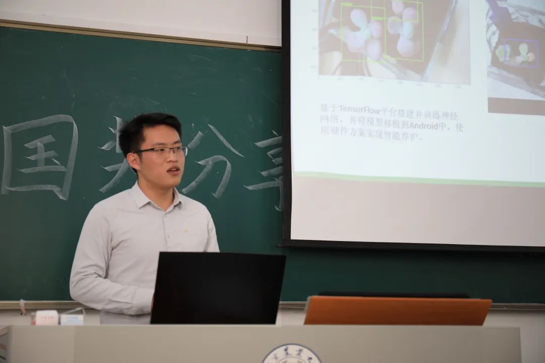 季呈明分享了自己的学术成果,包括基于SSD目标检测的番茄早疫病识别系统,多肉识别及养护系统和微生物浓度测量仪,讲述了自己本科到研究生阶段的研究历程和经历的波折,交流了科研过程中的心得感悟,激励同学们在科研的道路上坚持前进。