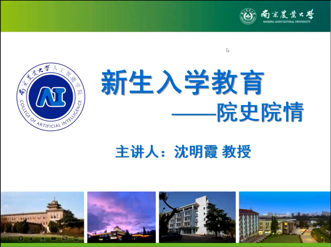 然后,沈老师介绍了学院构成:学院包含了三系共五专业:分别是计算机科学与技术系(计算机科学与技术、数据科学与大数据技术、人工智能)、自动化系(自动化)、电子信息科学与技术系(电子信息科学与技术),同时学院也包含了江苏省计算机与信息技术实验教学示范中心、江苏省农业电气化与自动化学科综合训练中心两大实验教学中心。学院设有1个博士点(智能科学与技术)、2个硕士点(计算机科学与技术、智能科学与技术)和1个专业学位授权点(电子信息),已经形成本科、硕士及博士和博士后(联合)的一体化教学和人才培养体系。学院内学科相近聚集、专业紧密交融。覆盖了“感知—执行“的人工智能产业链。