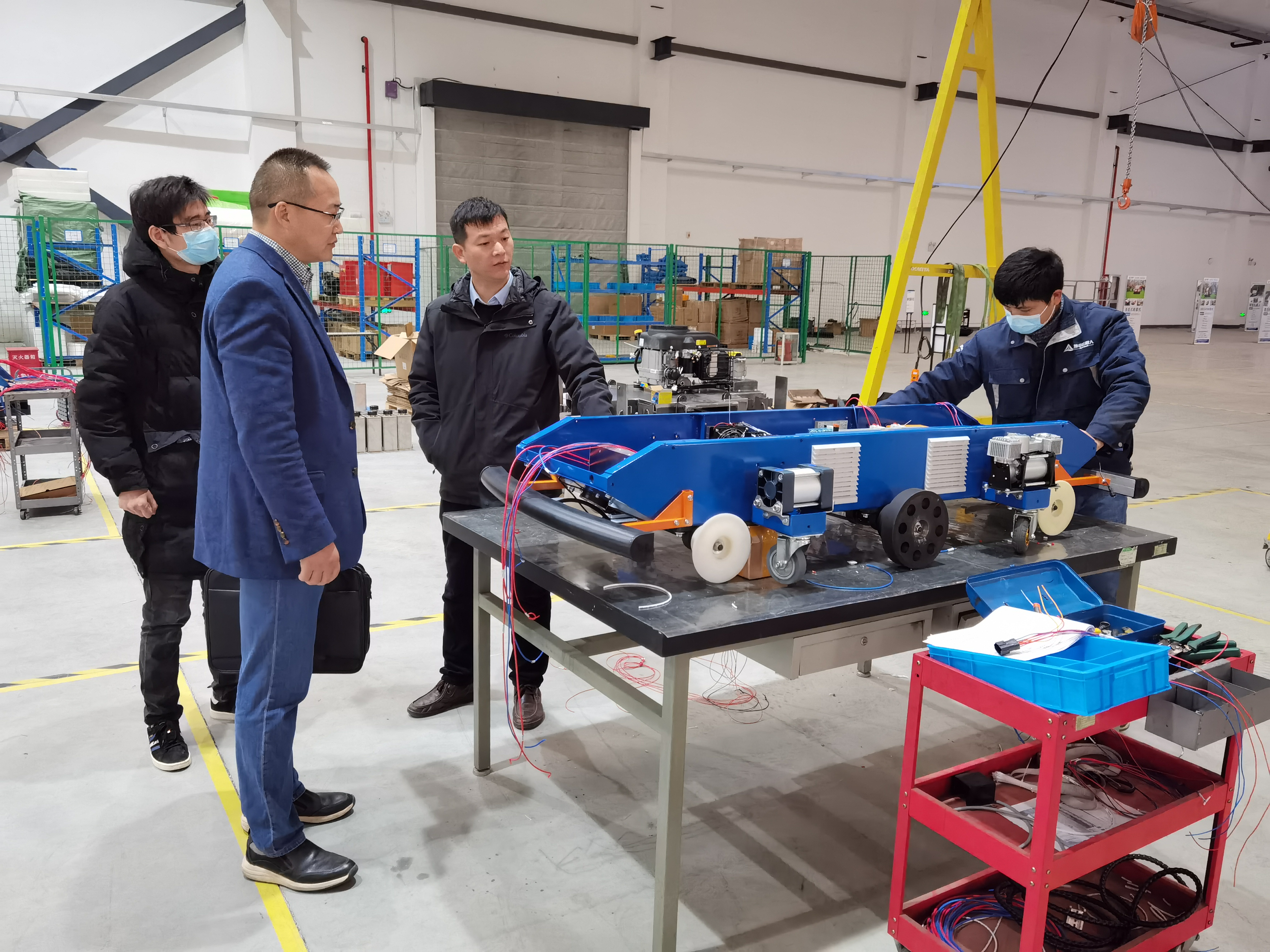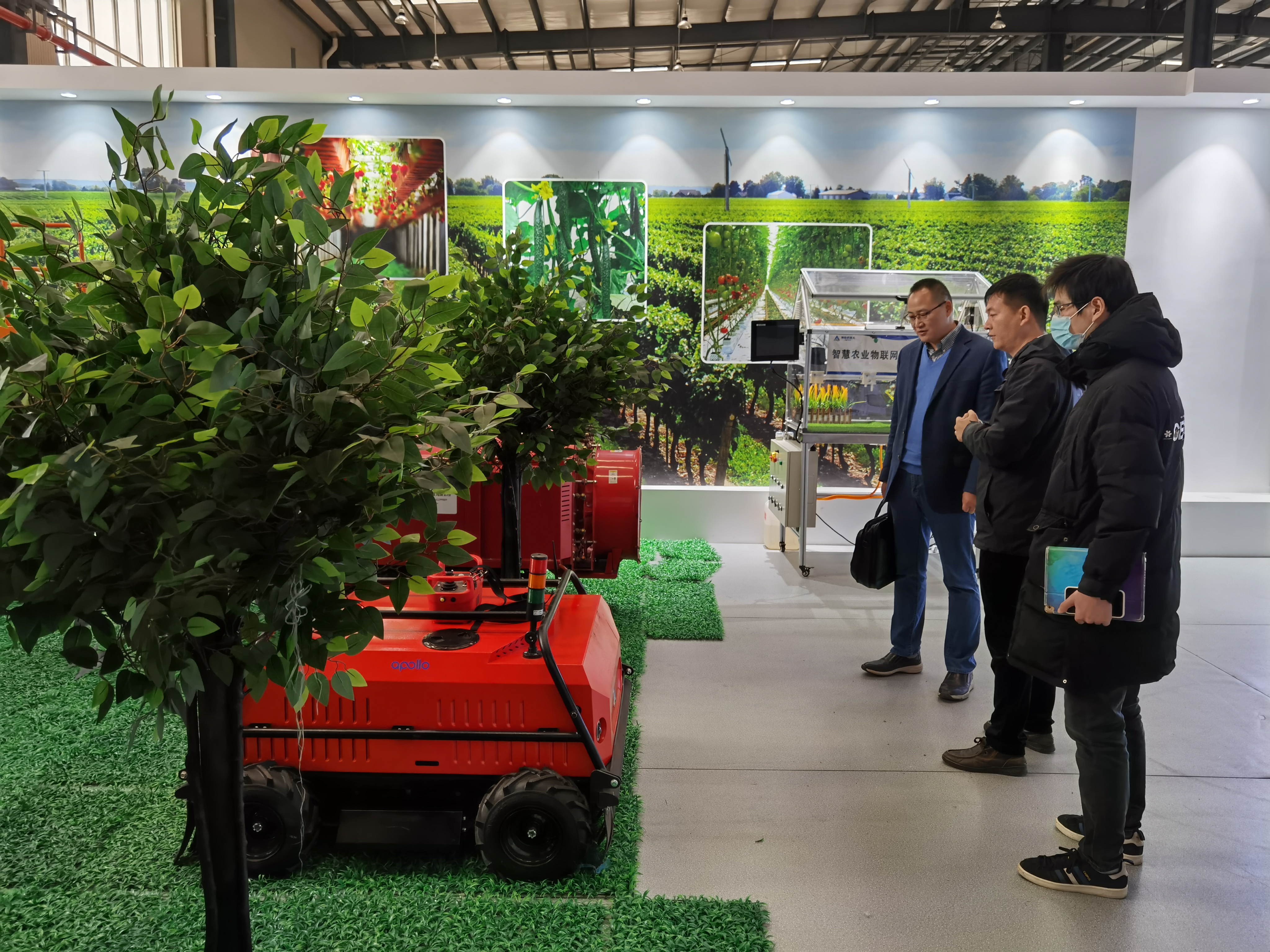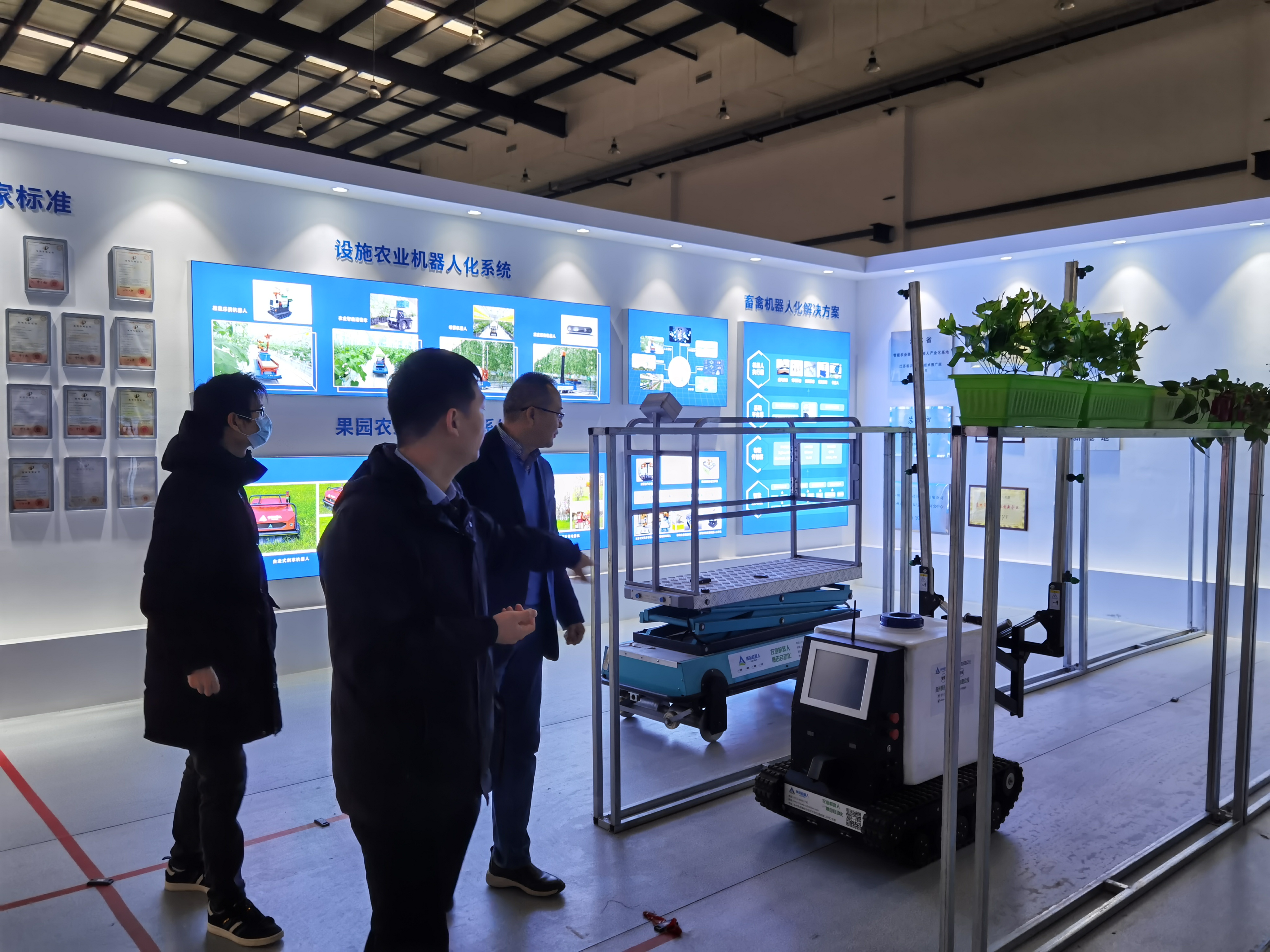 一行人,带领大家首先参观了园区。参观过程中,他现场实际演示机器人操控,详细介绍了园区内研发生产的各类农业机器人的结构特征、工作原理、实际用途等全方面内容。