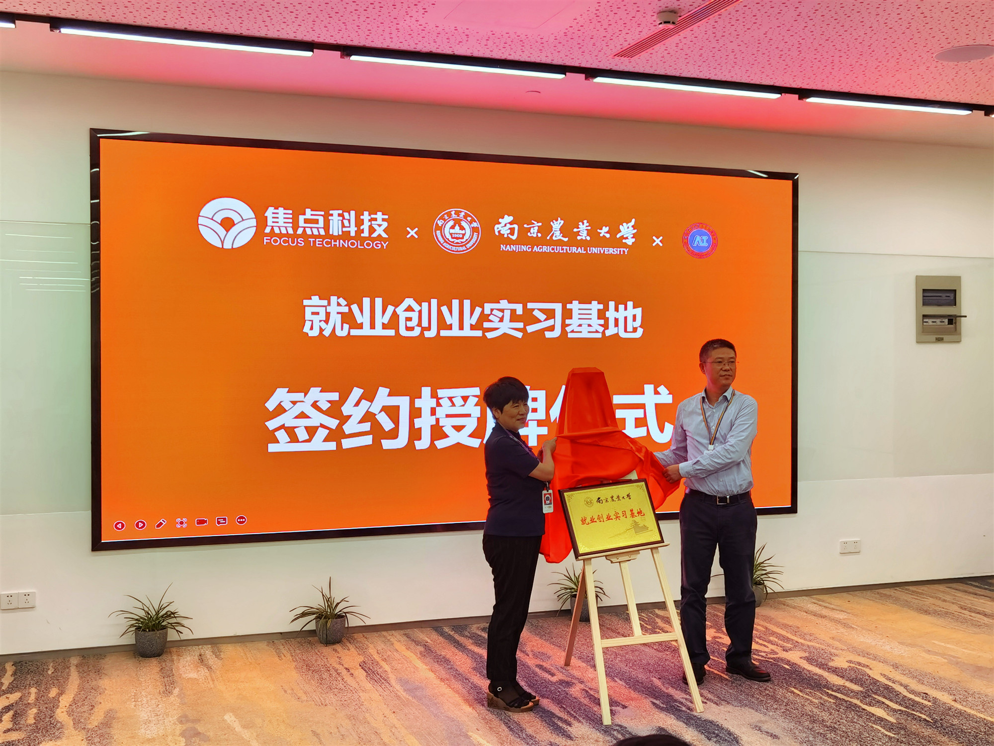 “就业创业实习基地”揭牌仪式。公司高级副总裁兼首席技术官成俊杰、研发中心技术总监何学勇、人力资源组织与发展部负责人周亚辉、人力资源部校招项目经理丁茂林出席本次签约与授牌仪式。