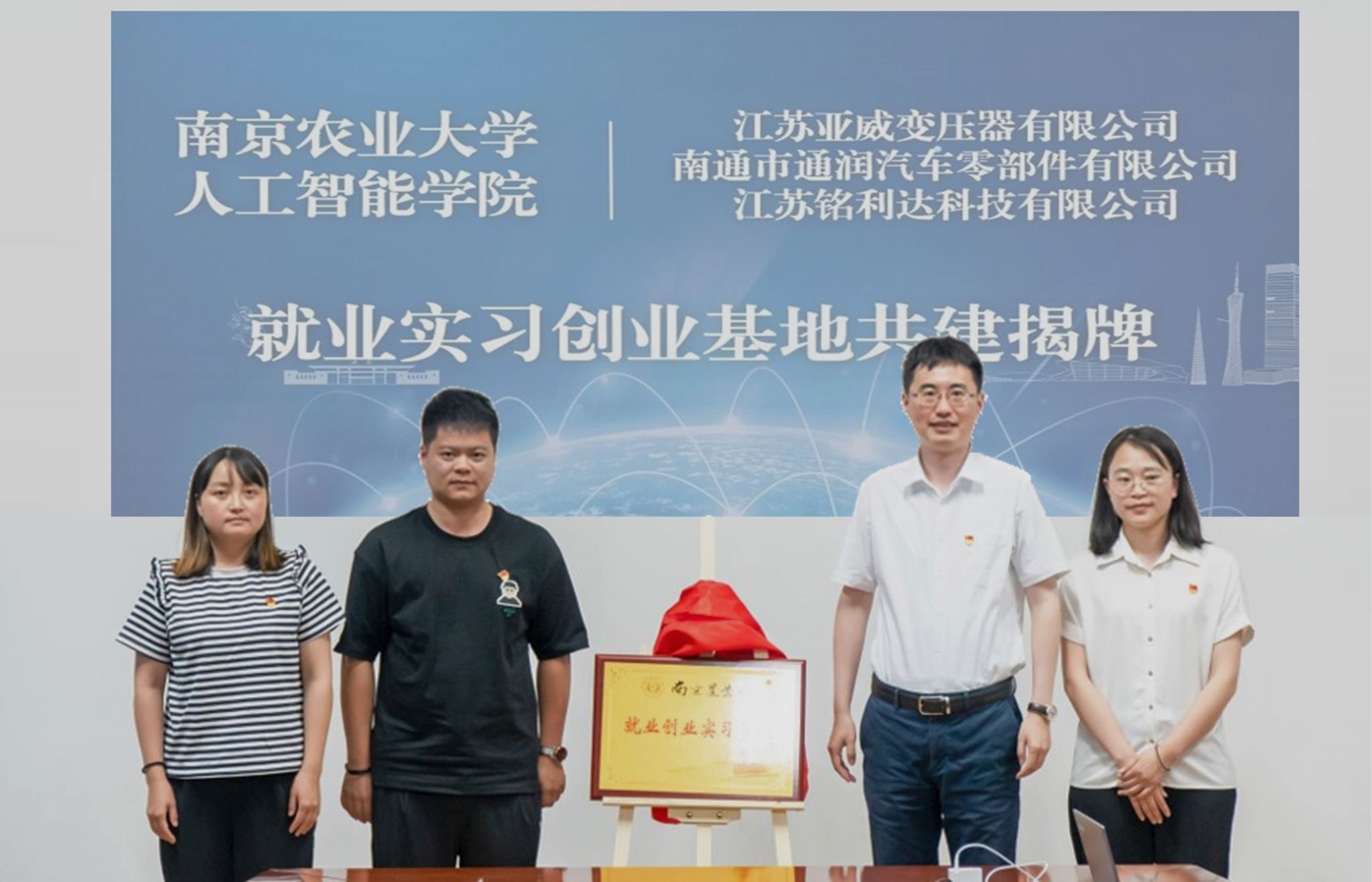 党委副书记吕一雷和江苏亚威变压器有限公司人事经理孙红红、南通市通润汽车零部件有限公司人事经理陈蓉、江苏铭利达科技有限公司人事主管夏磊作为代表,签订了就业创业实习基地协议,并为基地揭牌。