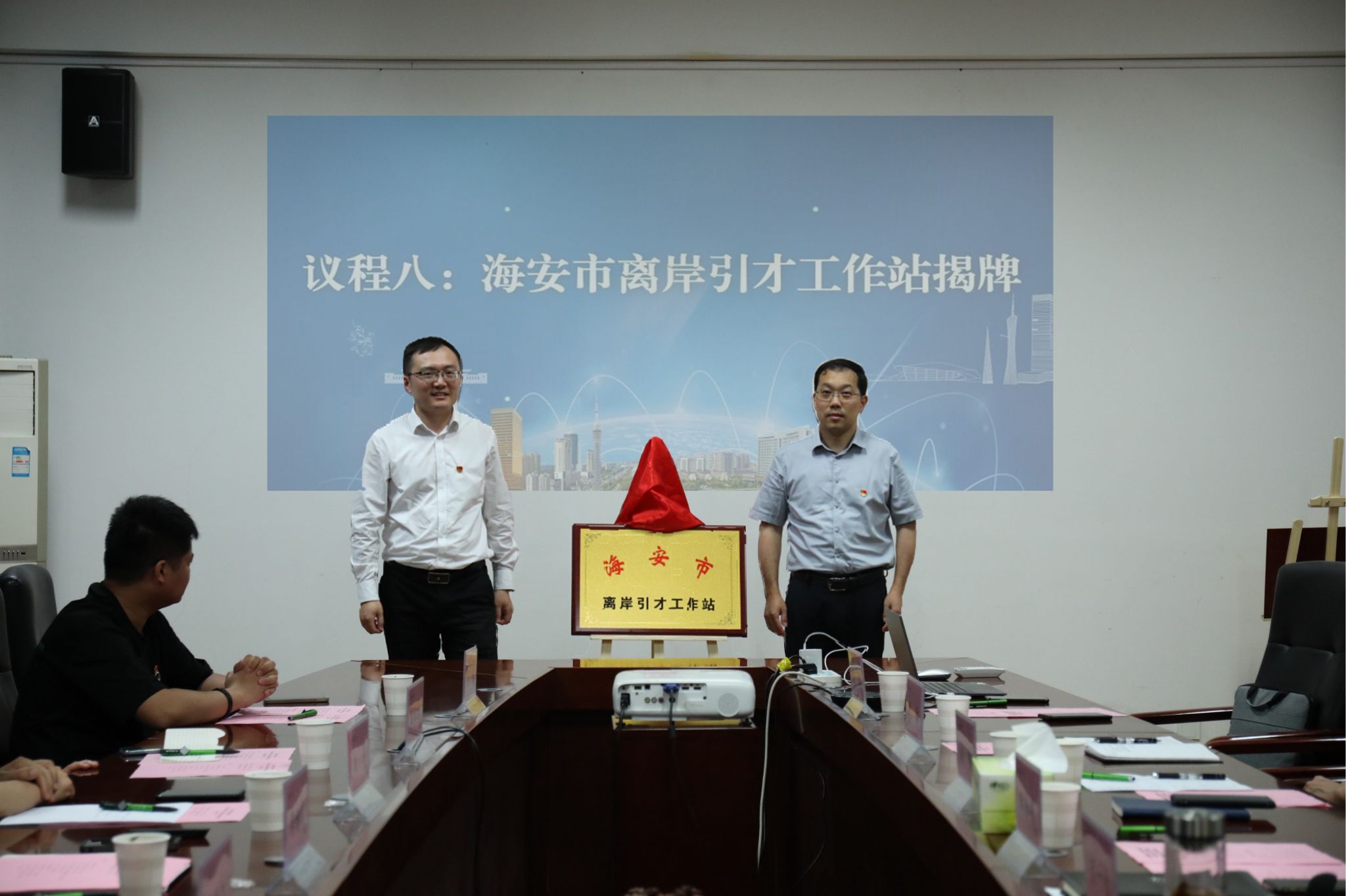 副院长刘杨和海安市委组织部知识分子工作科副科长缪啸岑作为双方代表,为“海安市离岸引才工作站”揭牌。